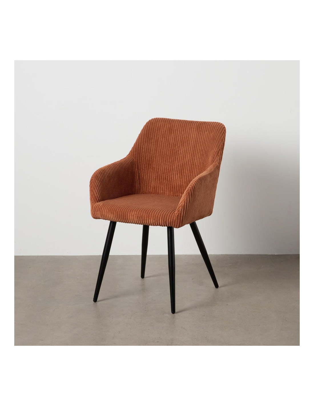 Fauteuil de table moderne chic Velours Terracotta Côtelé Métal Noir Belira (Lot de 2) - 1