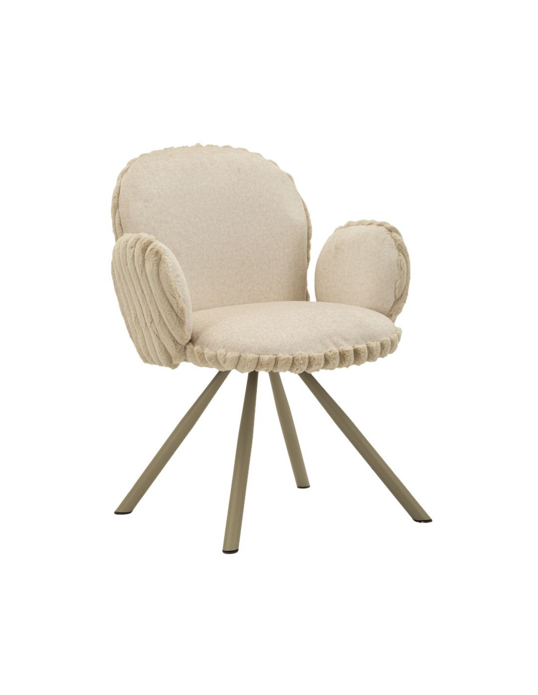 Fauteuil de table moderne chic Velours Vert Côtelé Métal Blanc crème Stoccolma (Lot de 2)