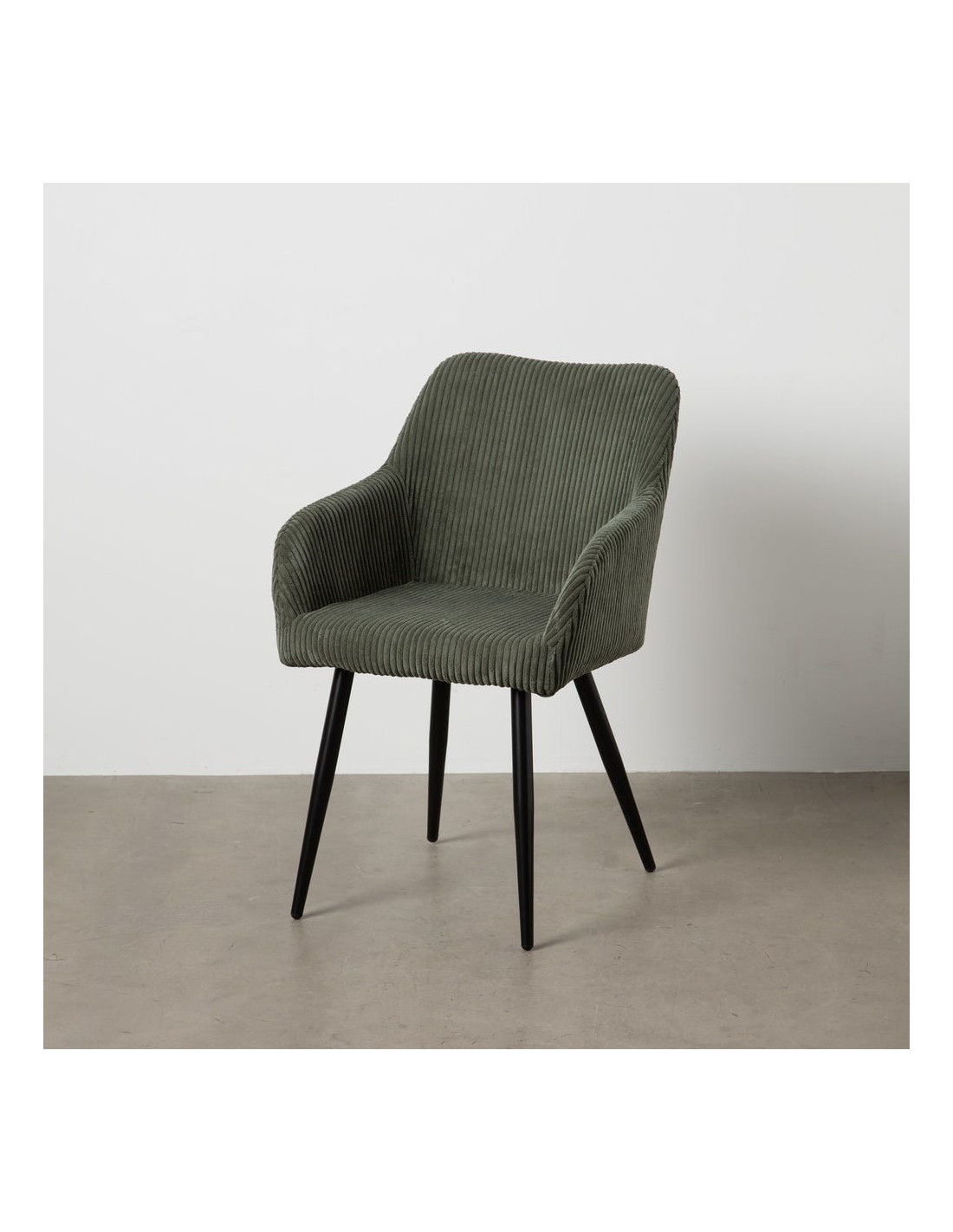 Fauteuil de table moderne chic Velours Vert Côtelé Métal Noir Belira (Lot de 2)