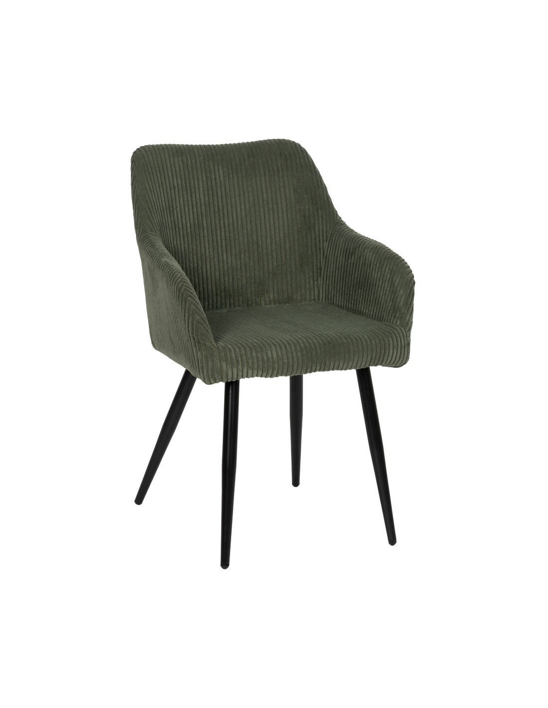 Fauteuil de table moderne chic Velours Vert Côtelé Métal Noir Belira (Lot de 2) - 1