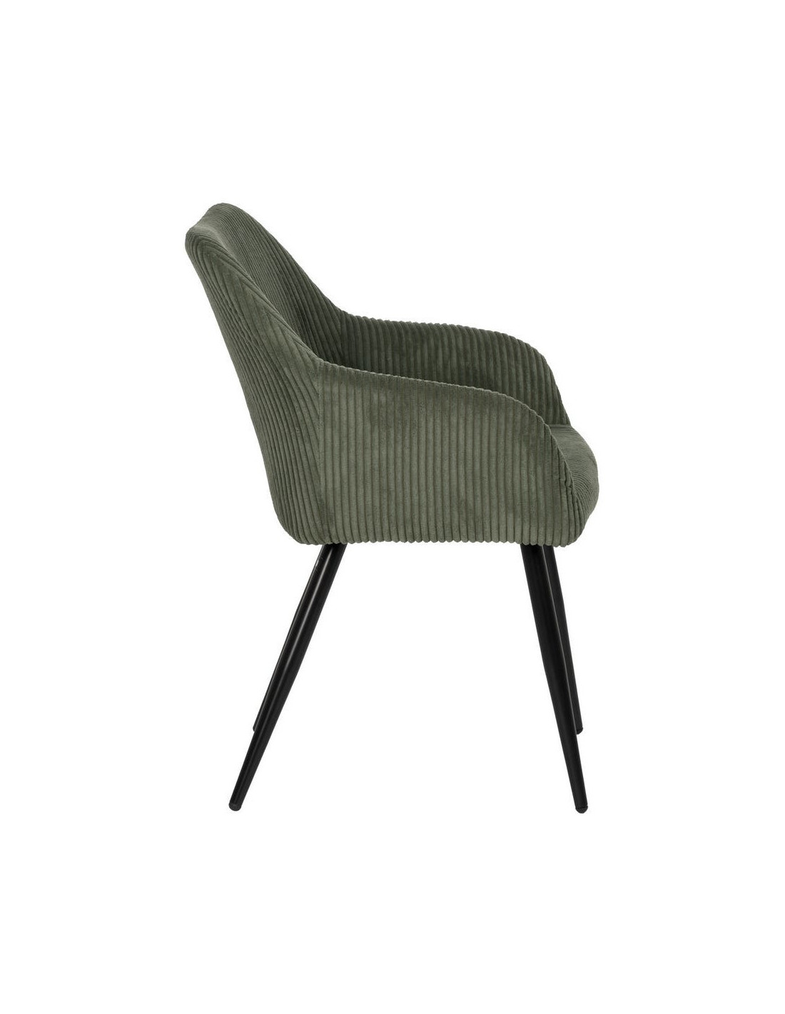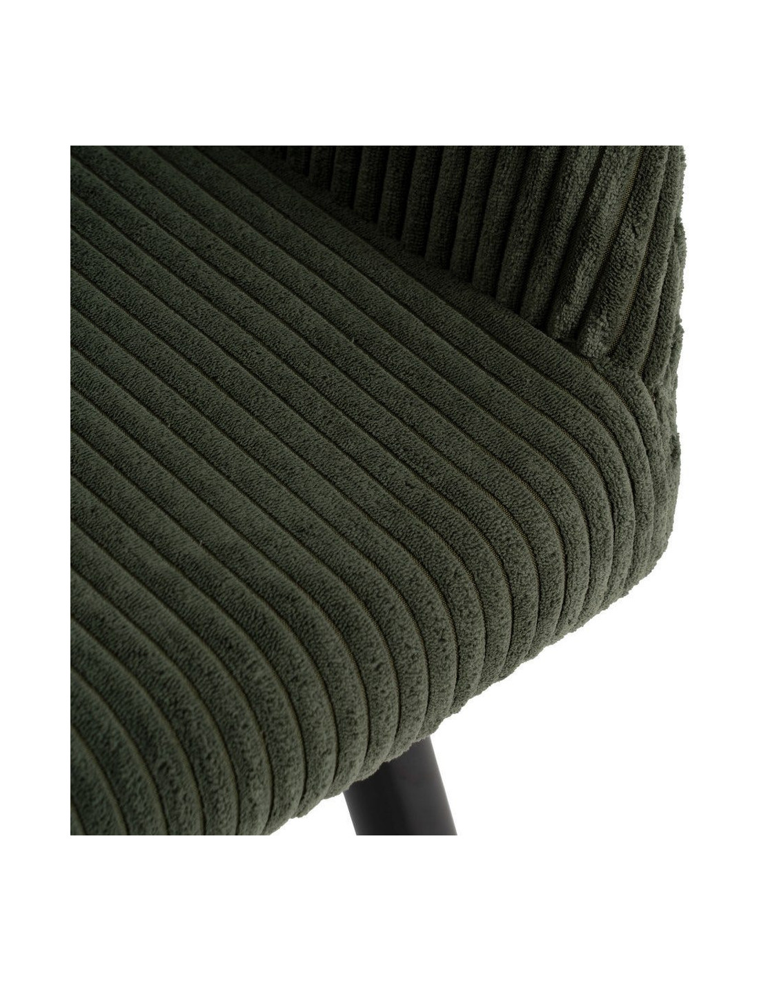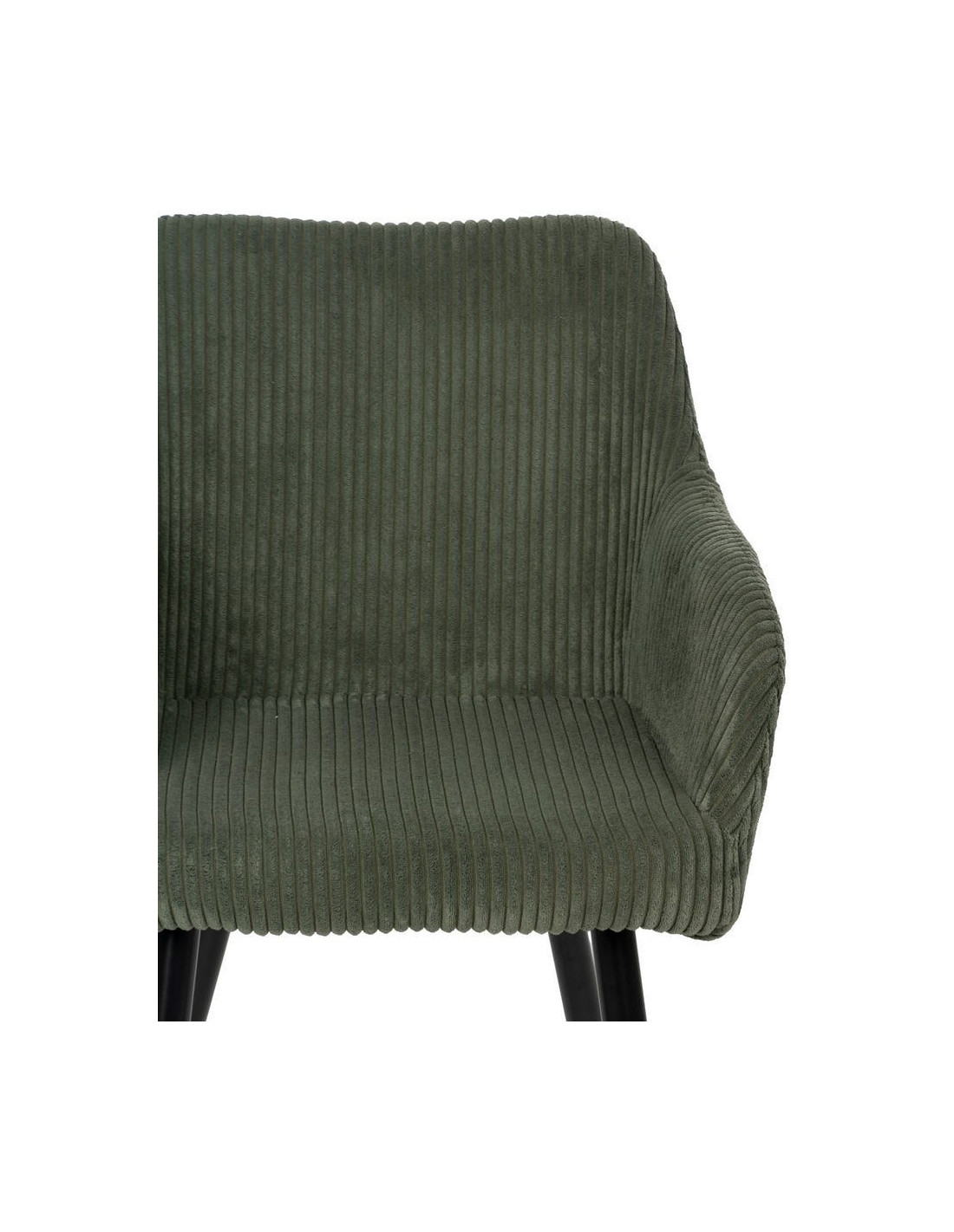 Fauteuil de table moderne chic Velours Vert Côtelé Métal Noir Belira (Lot de 2) - 7
