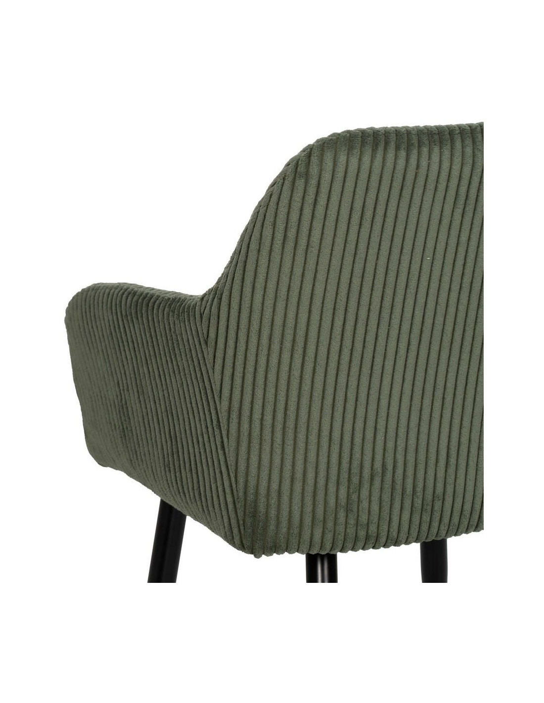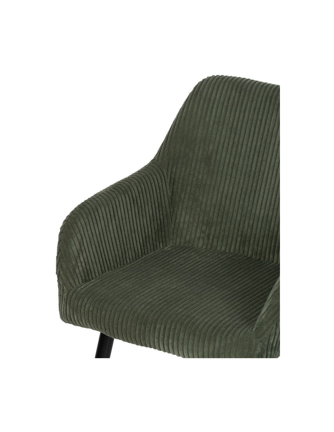 Fauteuil de table moderne chic Velours Vert Côtelé Métal Noir Belira (Lot de 2) - 6