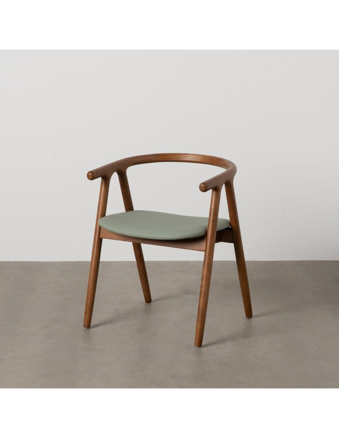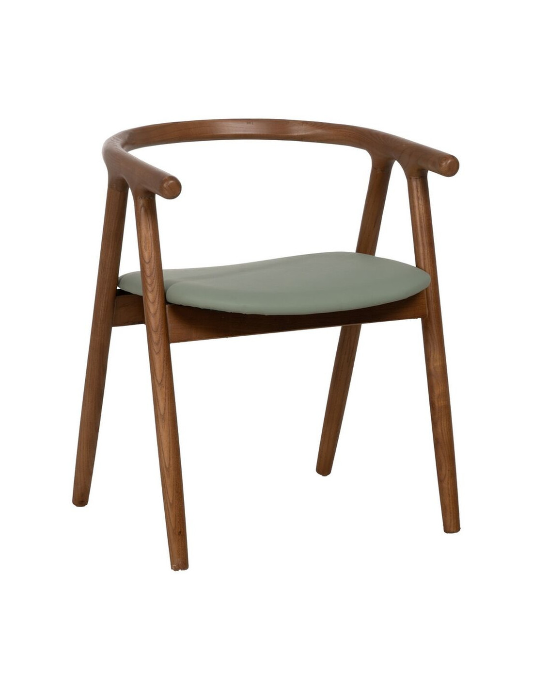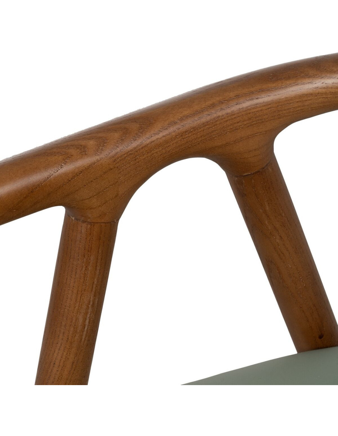 Fauteuil de table mid-century moderne en Bois d'orme Marron Polyuréthane Vert Nyora - 1