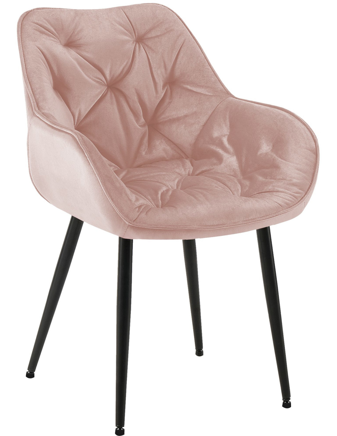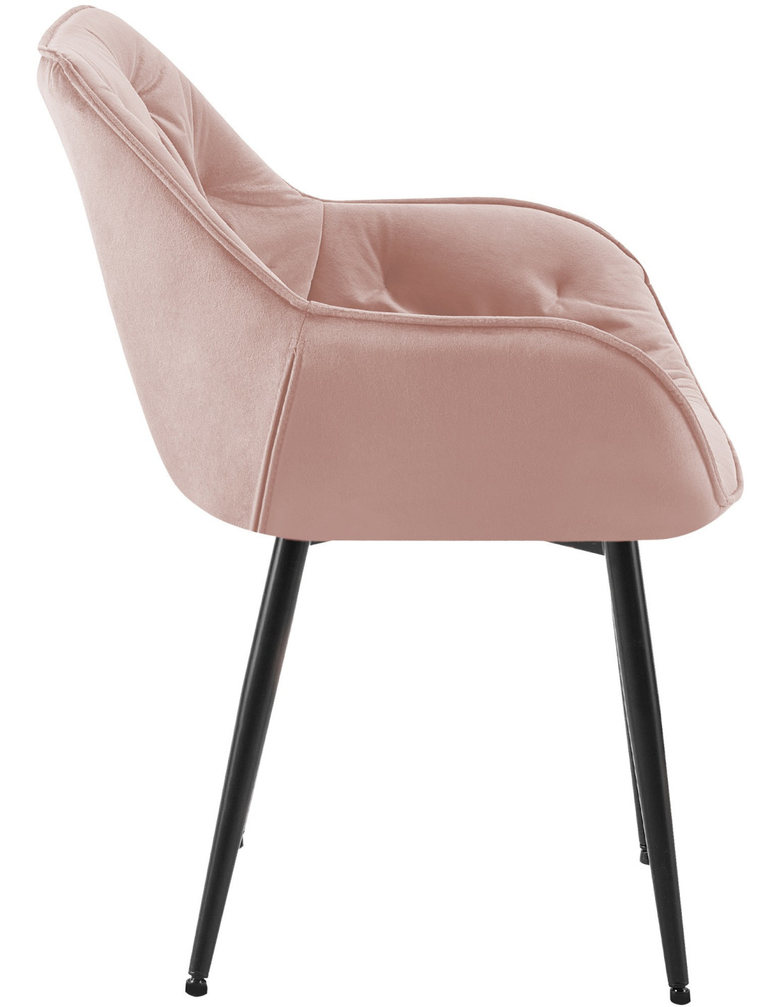 Fauteuil de table moderne capitonné en Velours Rose Métal Noir Adrina
