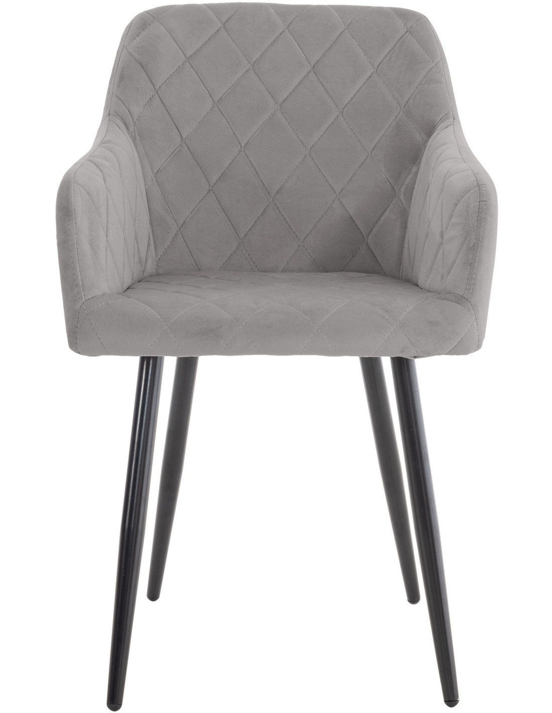 Fauteuil de table motif matelassé en Velours Gris Métal Noir Solinda