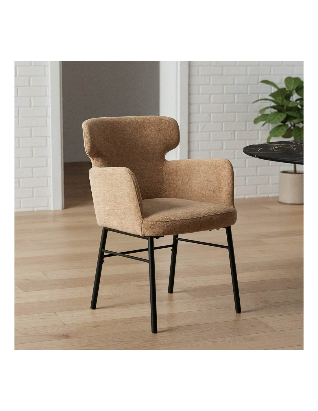 Fauteuil de table moderne mid-century Tissu Beige Métal Noir Gavelo (Lot de 2) - 1