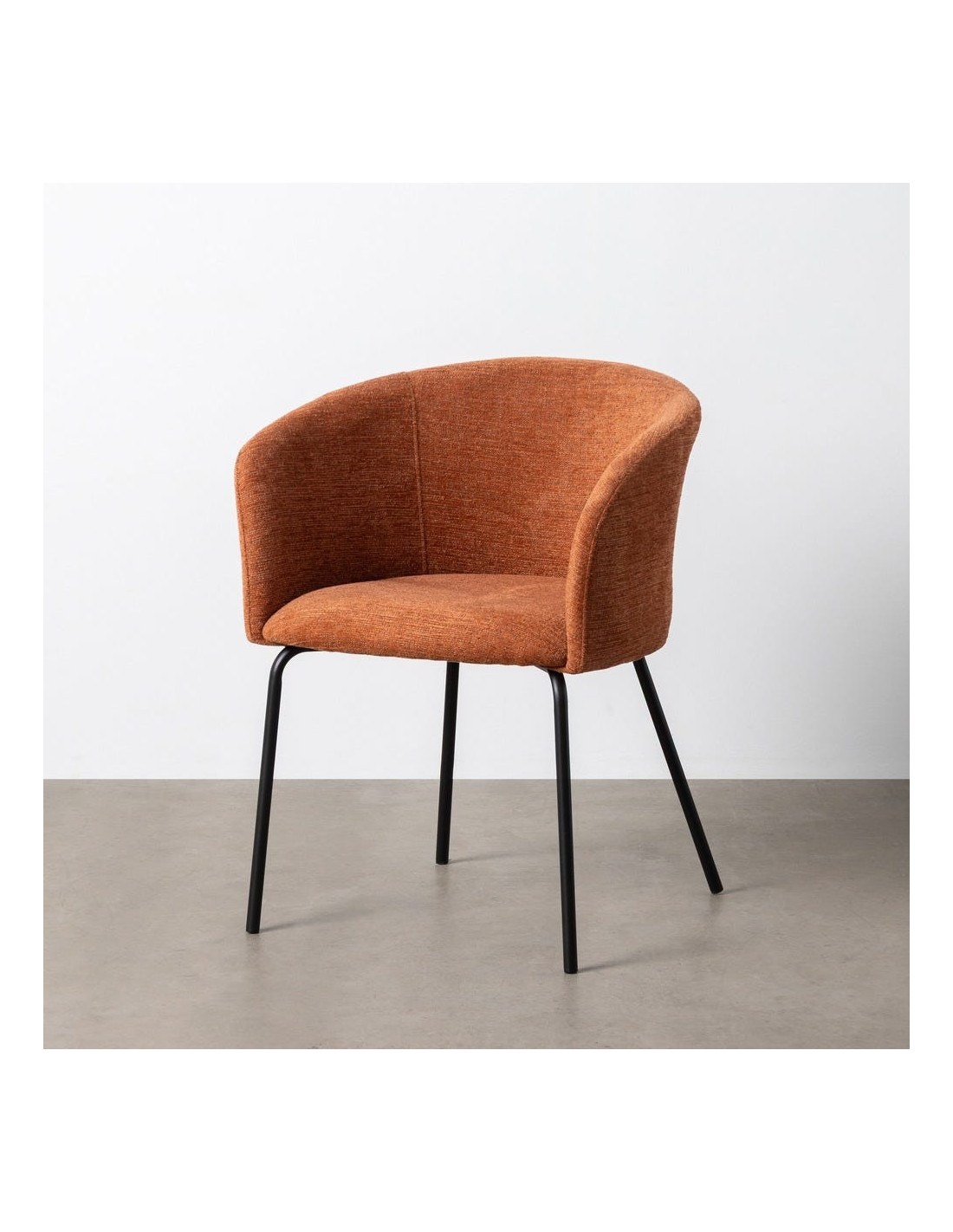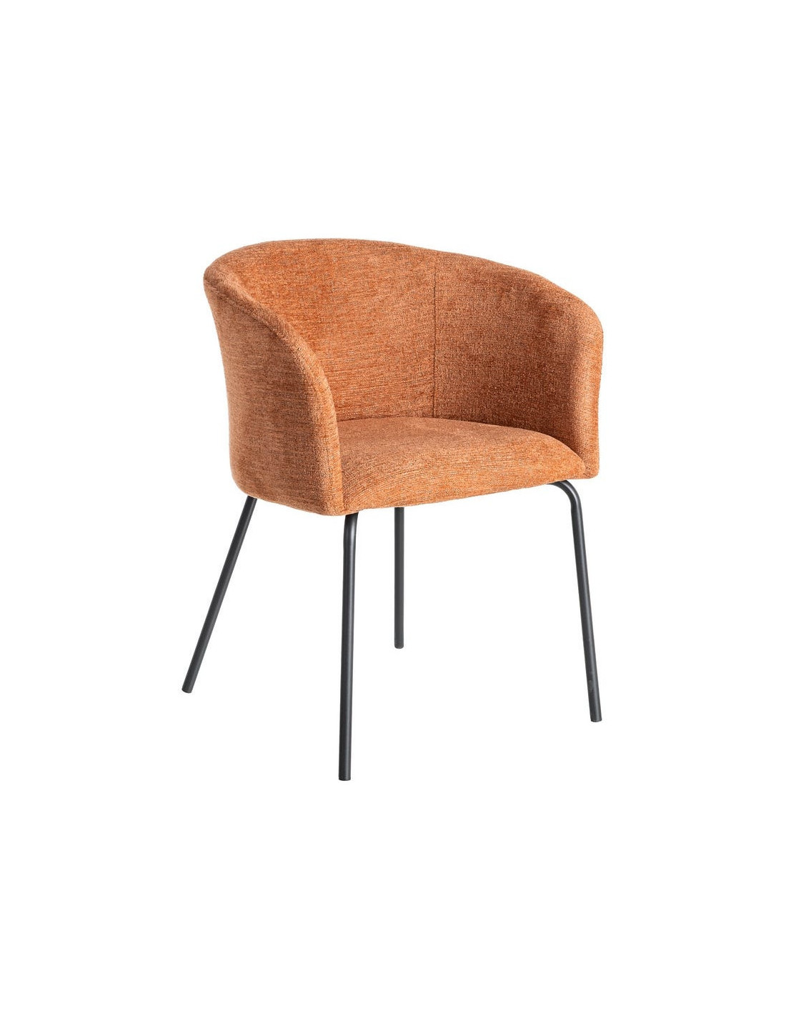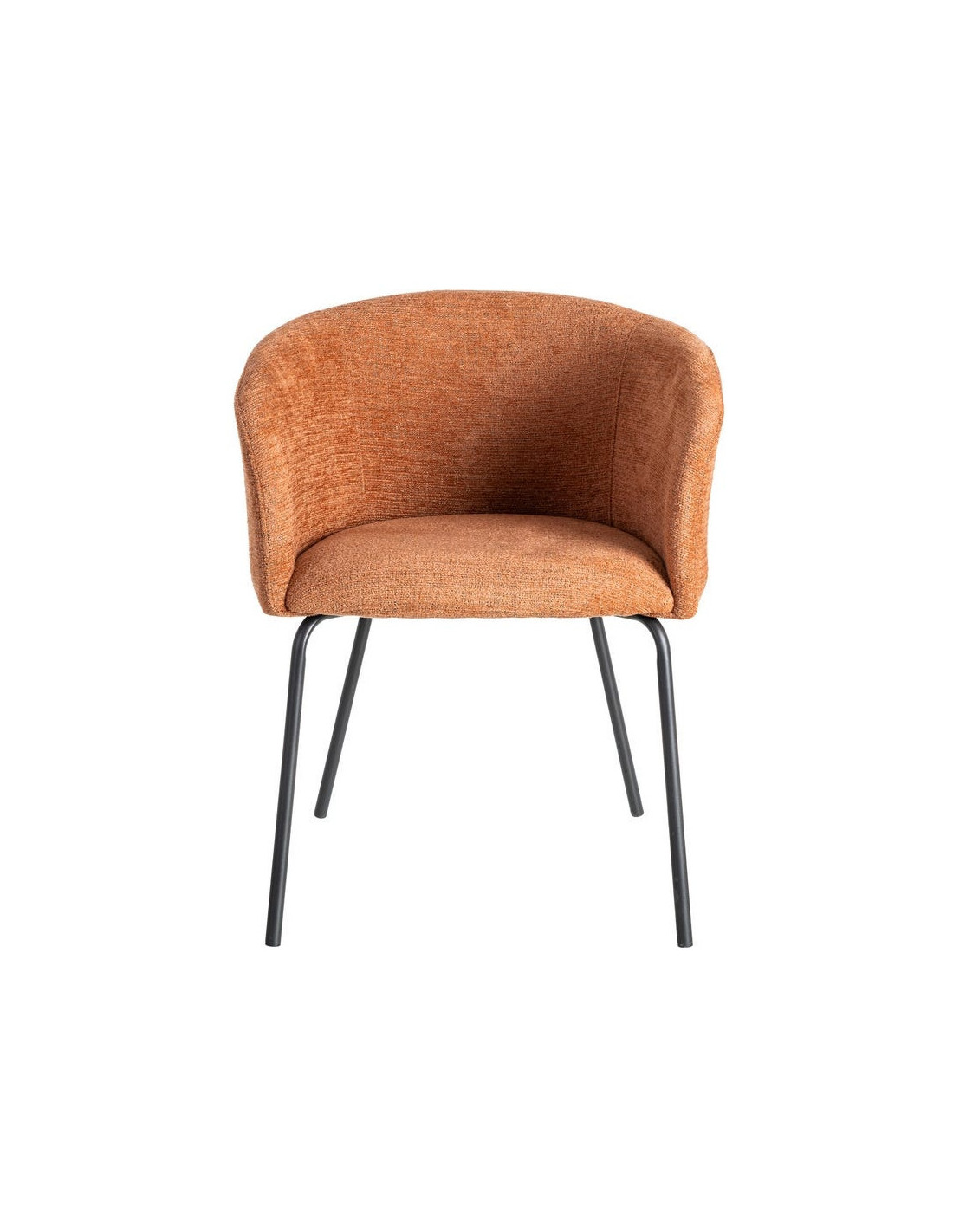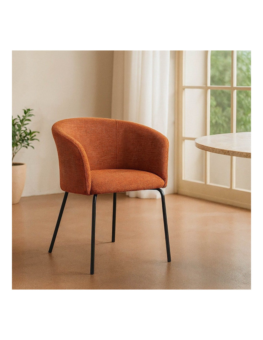 Fauteuil de table moderne rond en Tissu Orange citrouille Métal Noir Meyora (Lot de 2)