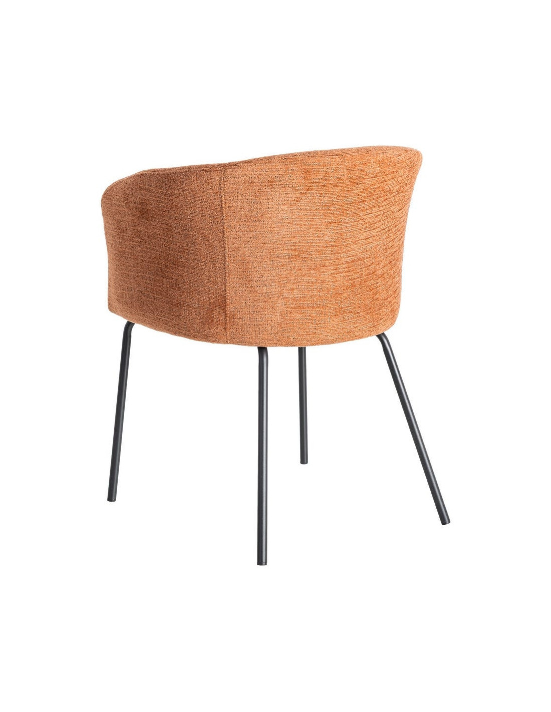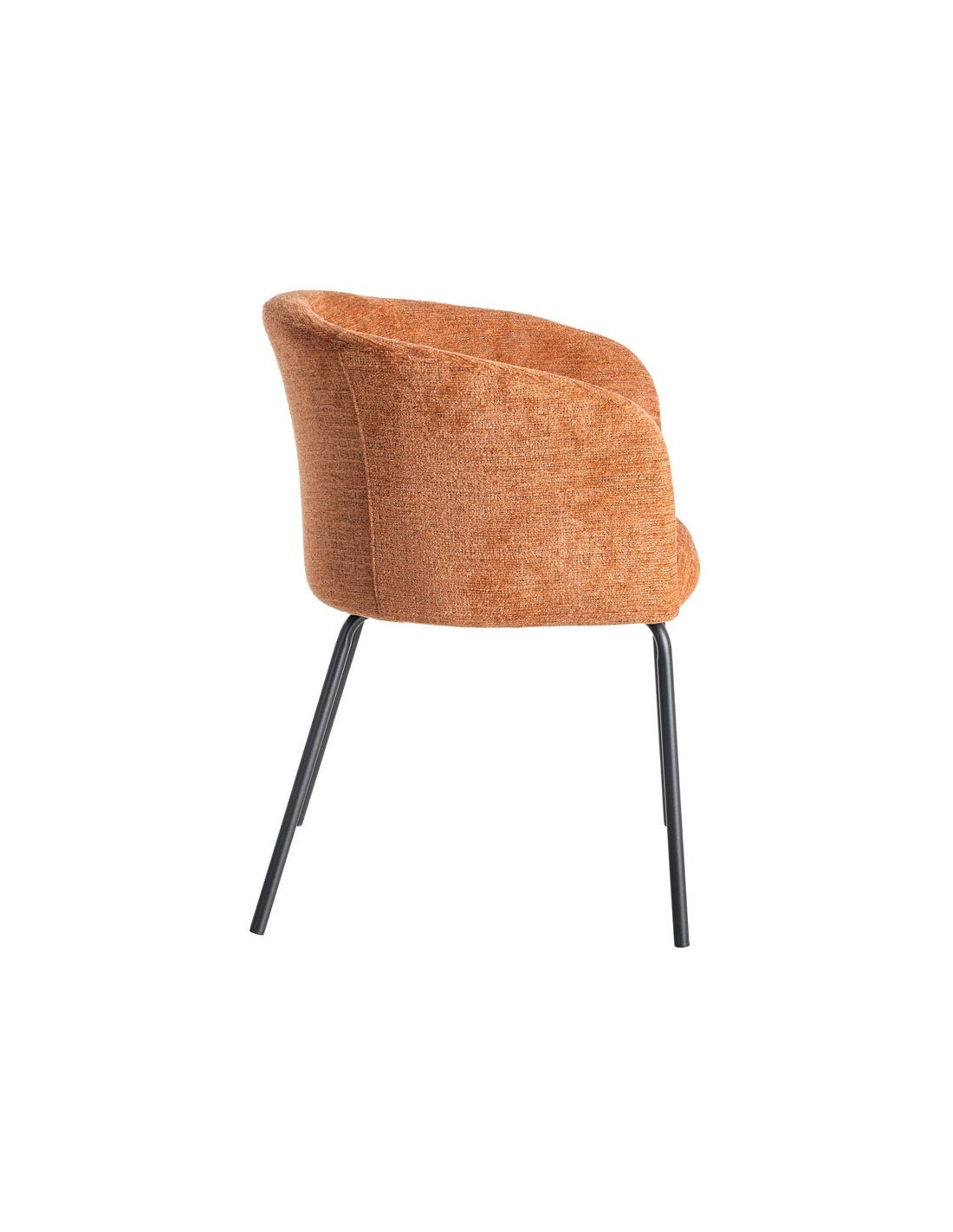 Fauteuil de table moderne rond en Tissu Orange citrouille Métal Noir Meyora (Lot de 2) - 3