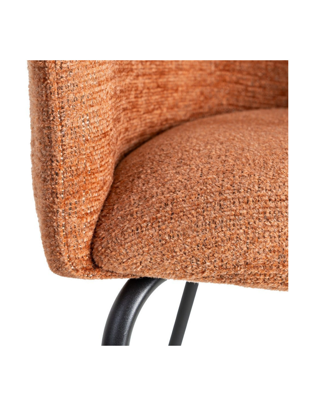 Fauteuil de table moderne rond en Tissu Orange citrouille Métal Noir Meyora (Lot de 2) - 6