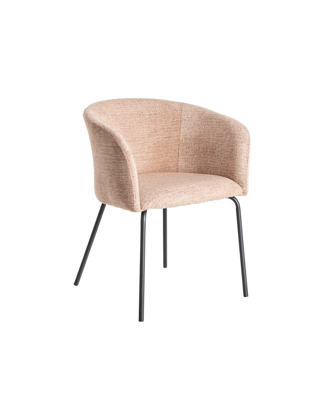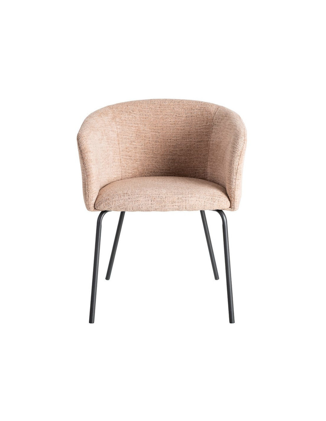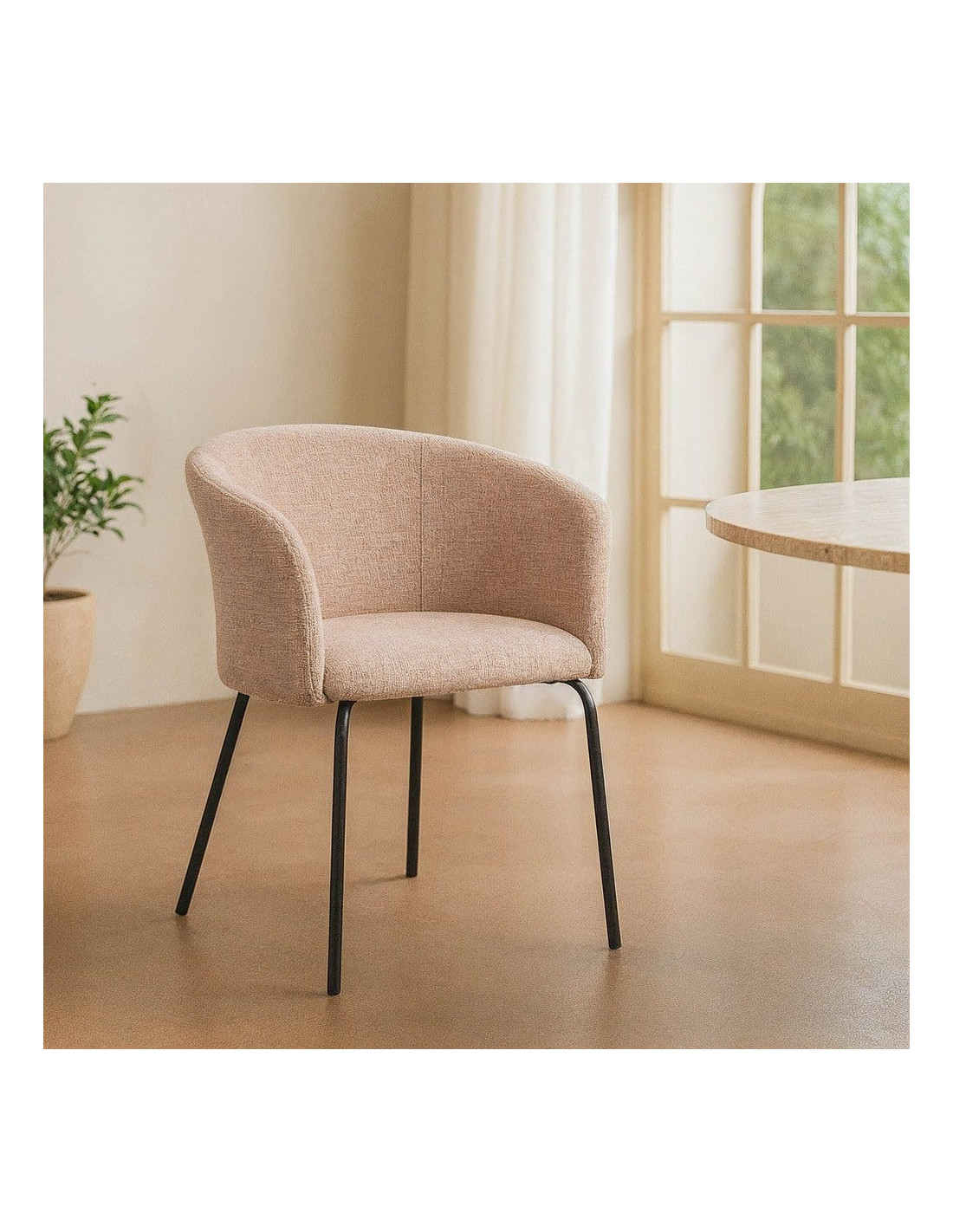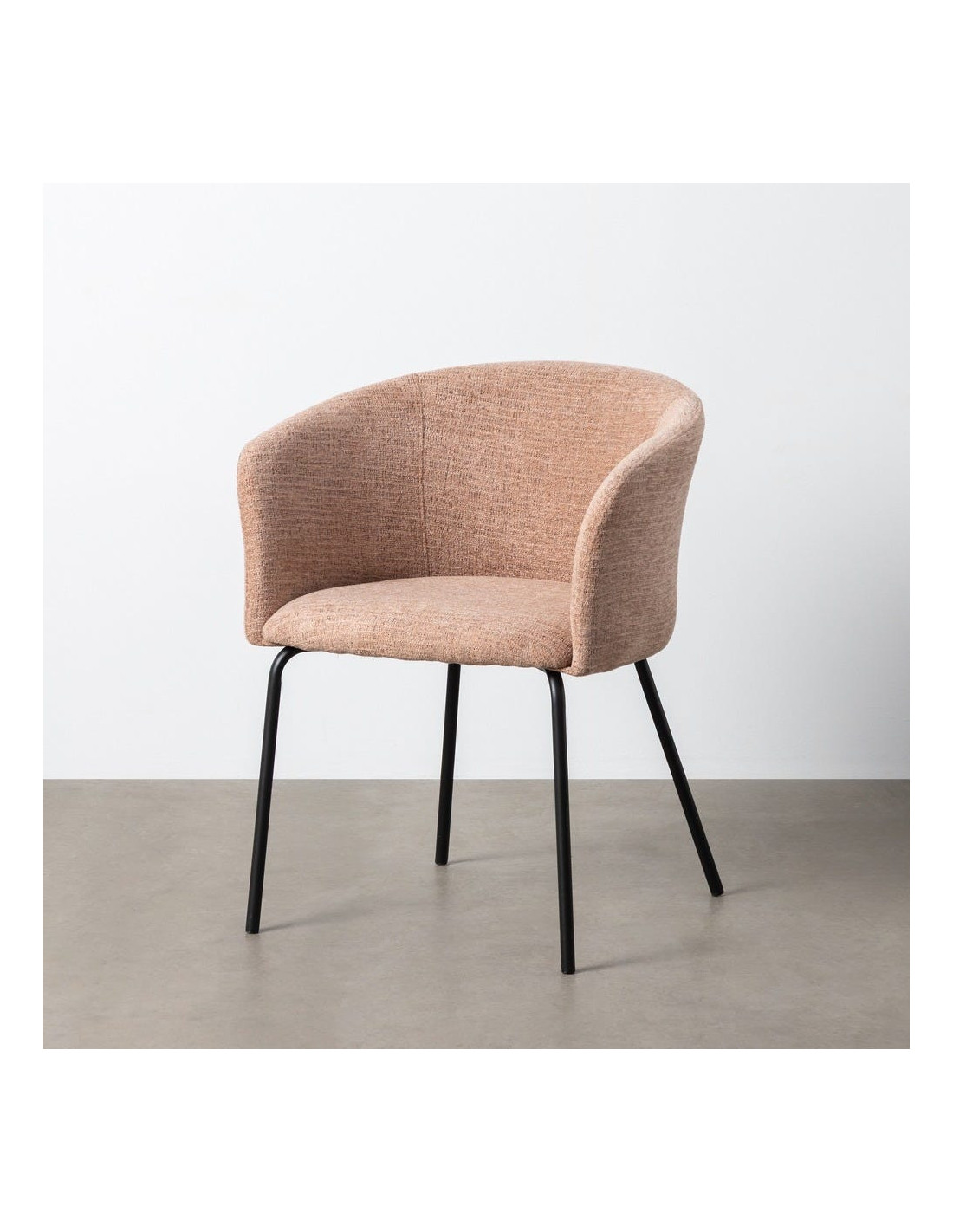 Fauteuil de table moderne rond en Tissu Rose pêche Métal Noir Meyora (Lot de 2) - 1