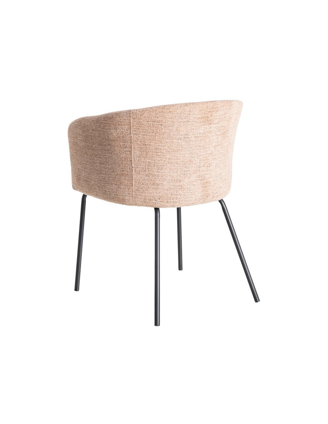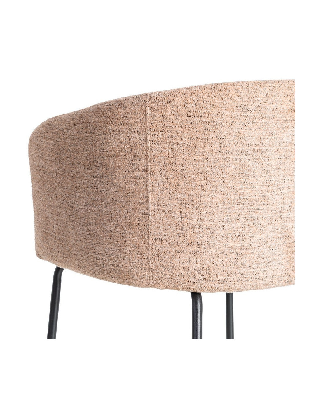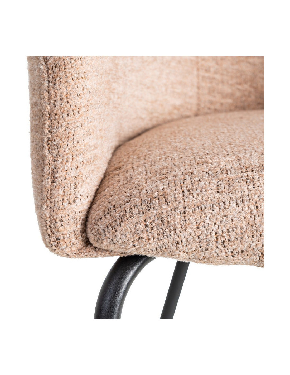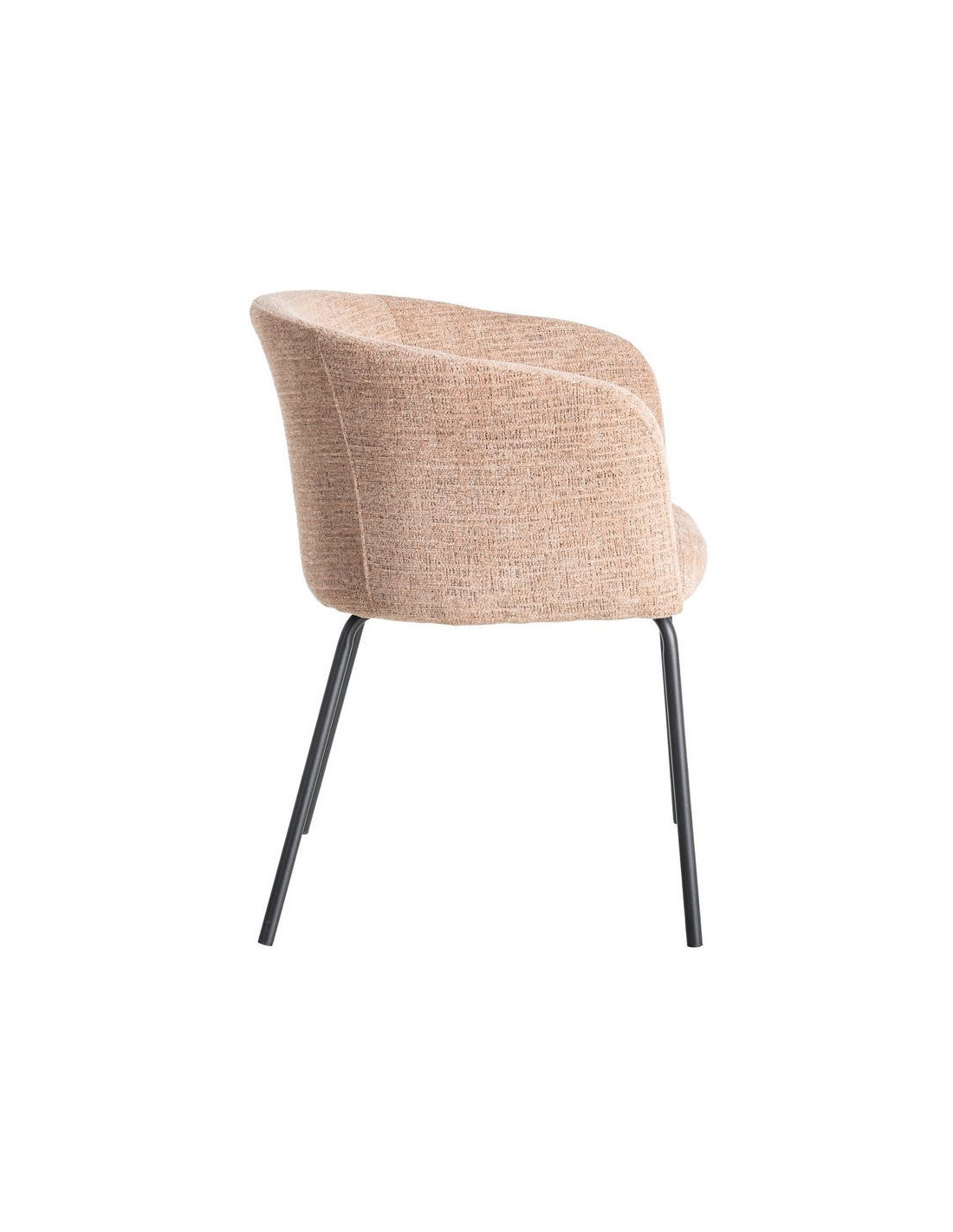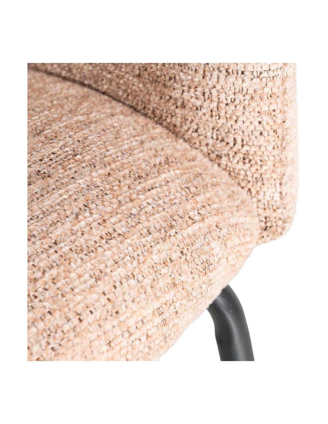 Fauteuil de table moderne rond en Tissu Rose pêche Métal Noir Meyora (Lot de 2) - 7