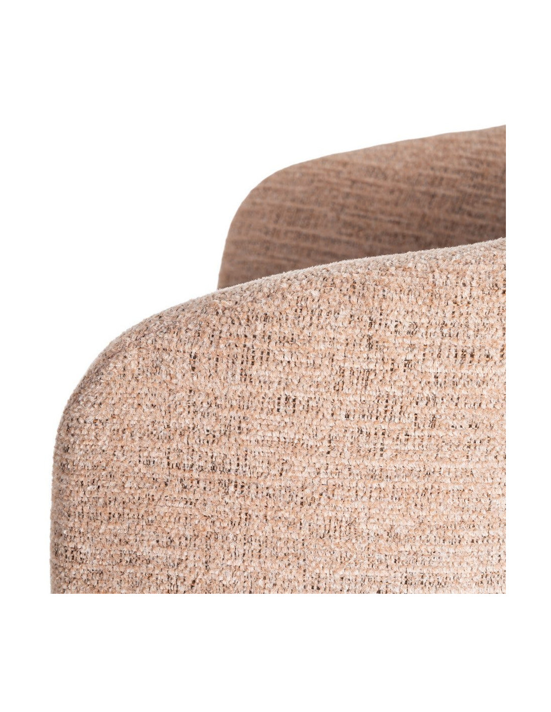 Fauteuil de table moderne rond en Tissu Rose pêche Métal Noir Meyora (Lot de 2) - 3