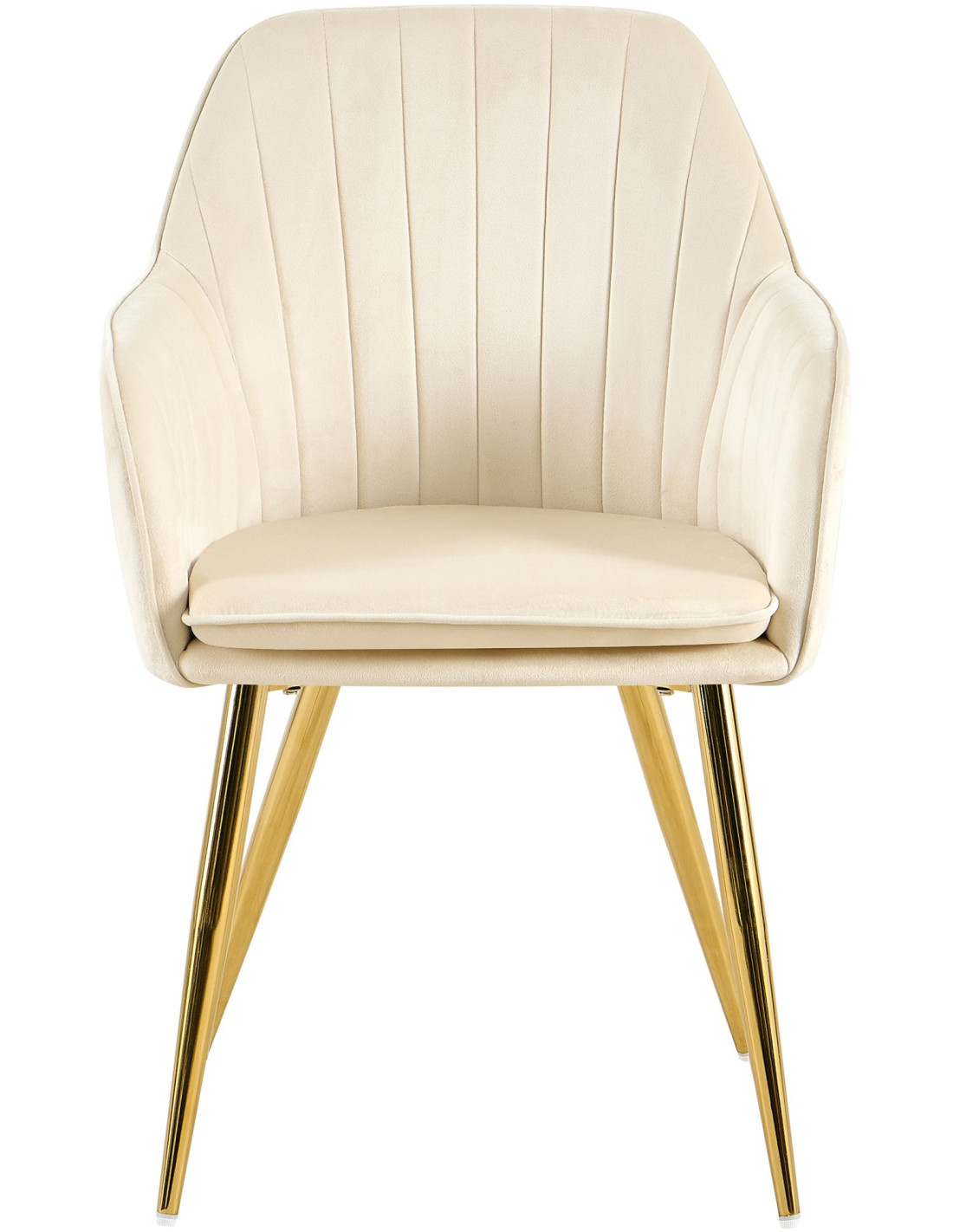 Fauteuil de table style art déco années 50 Velours Blanc crème Métal Doré Brillant Rielo