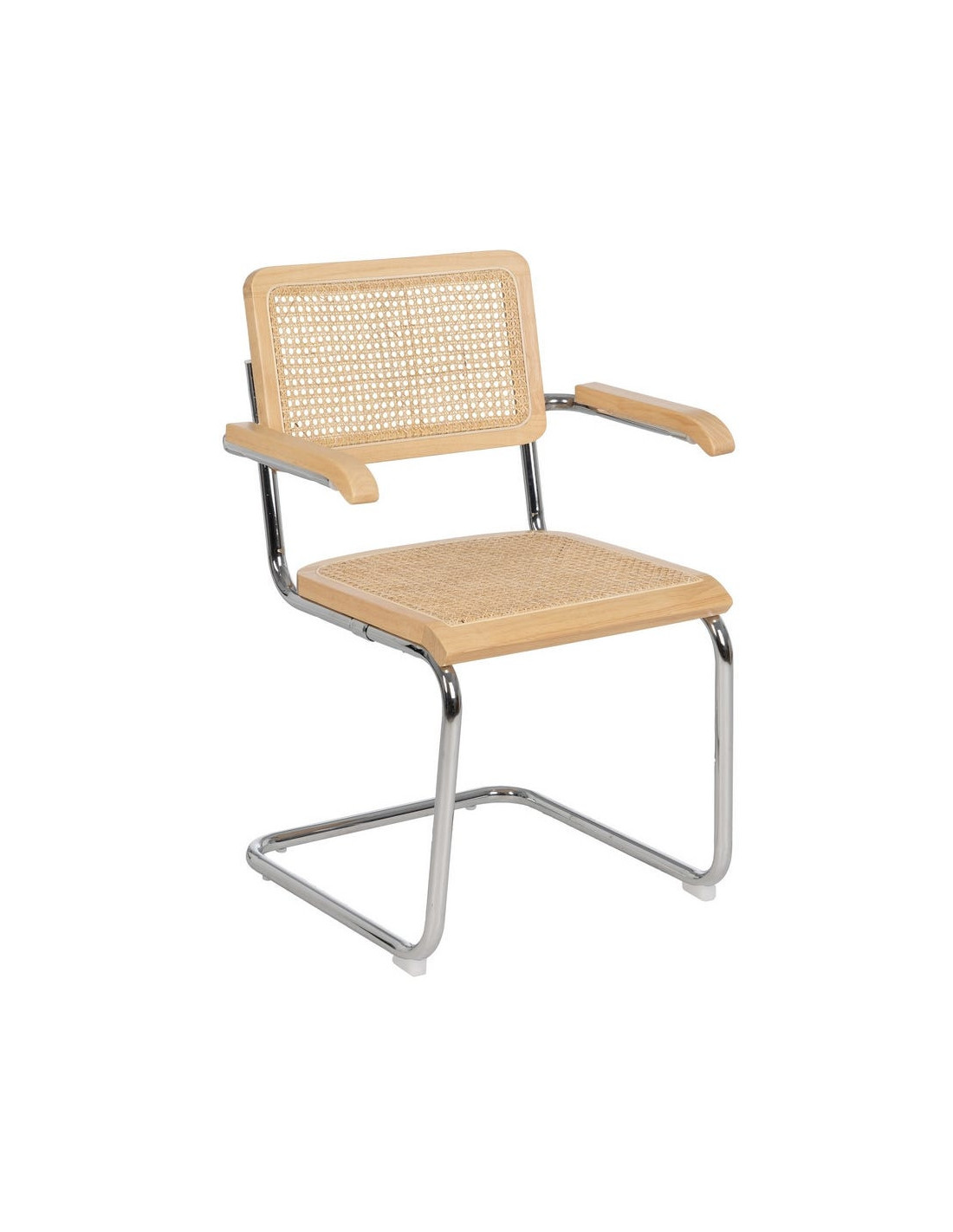 Fauteuil de table Style vintage Bauhaus Rotin Naturel Cannage Métal Argenté Bois d'hévéa Orvian (Lot de 2)
