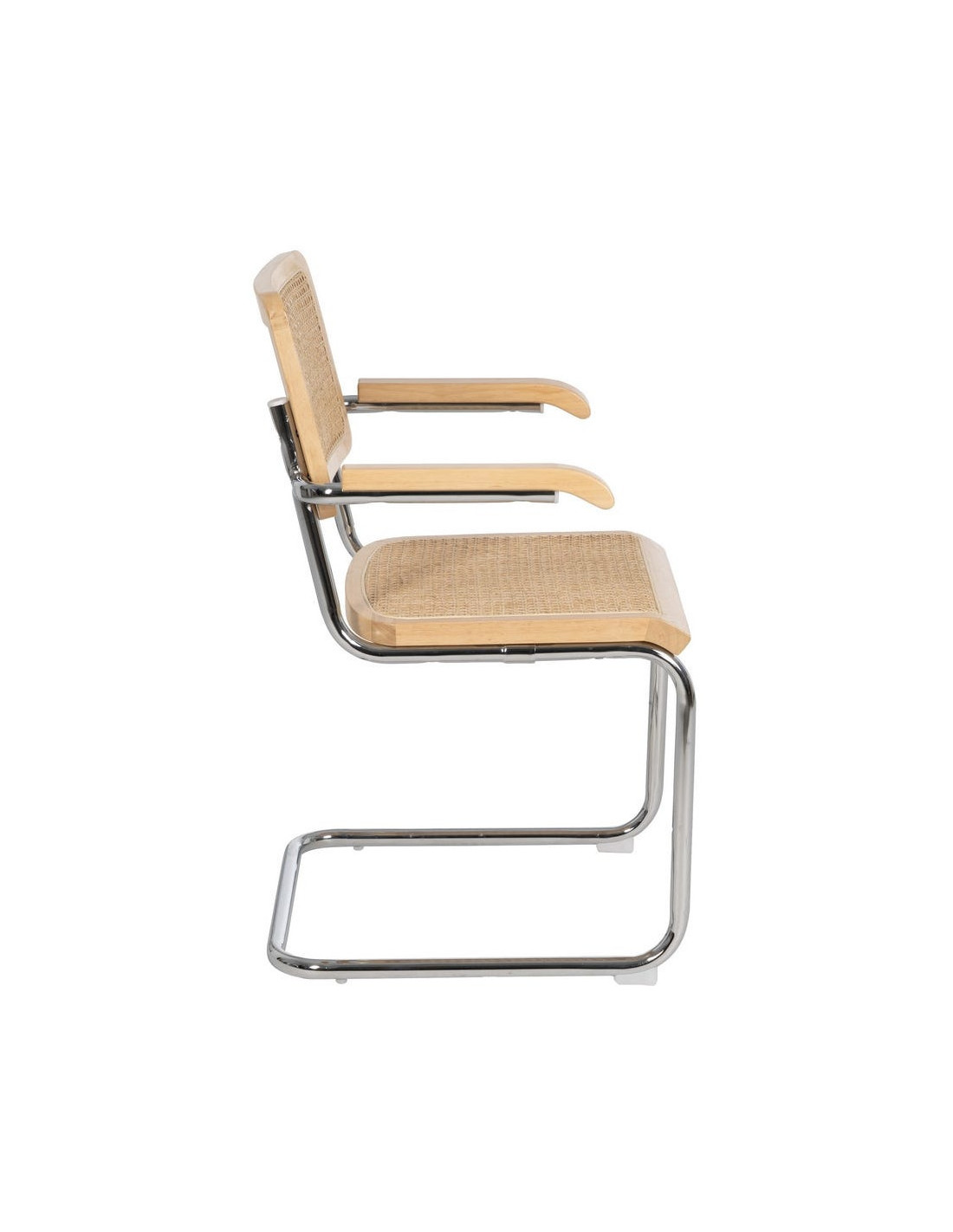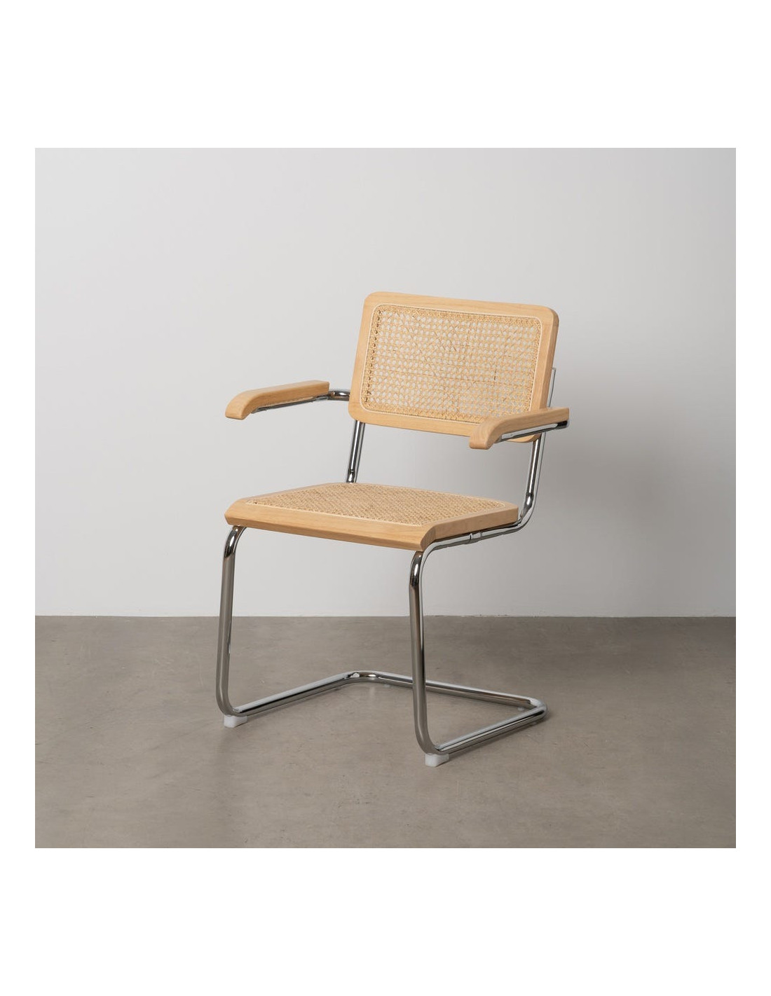 Fauteuil de table Style vintage Bauhaus Rotin Naturel Cannage Métal Argenté Bois d'hévéa Orvian (Lot de 2) - 1