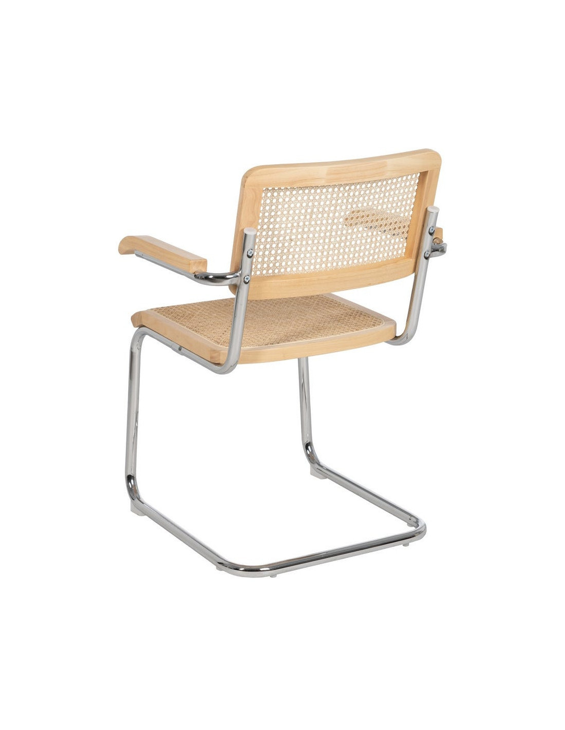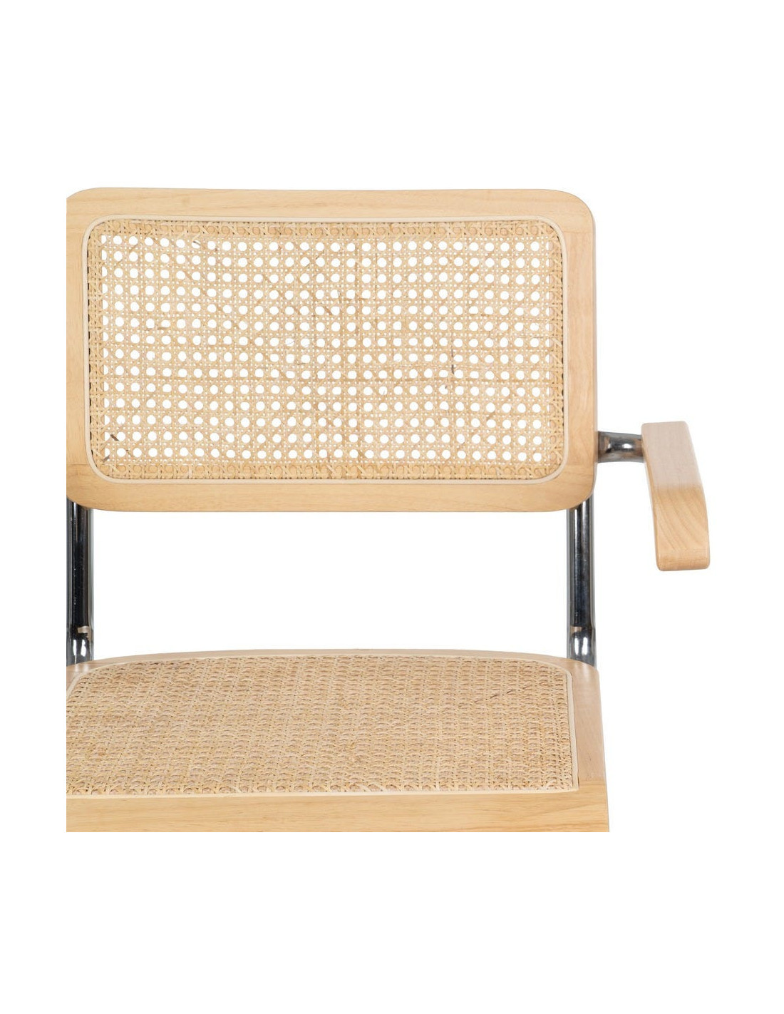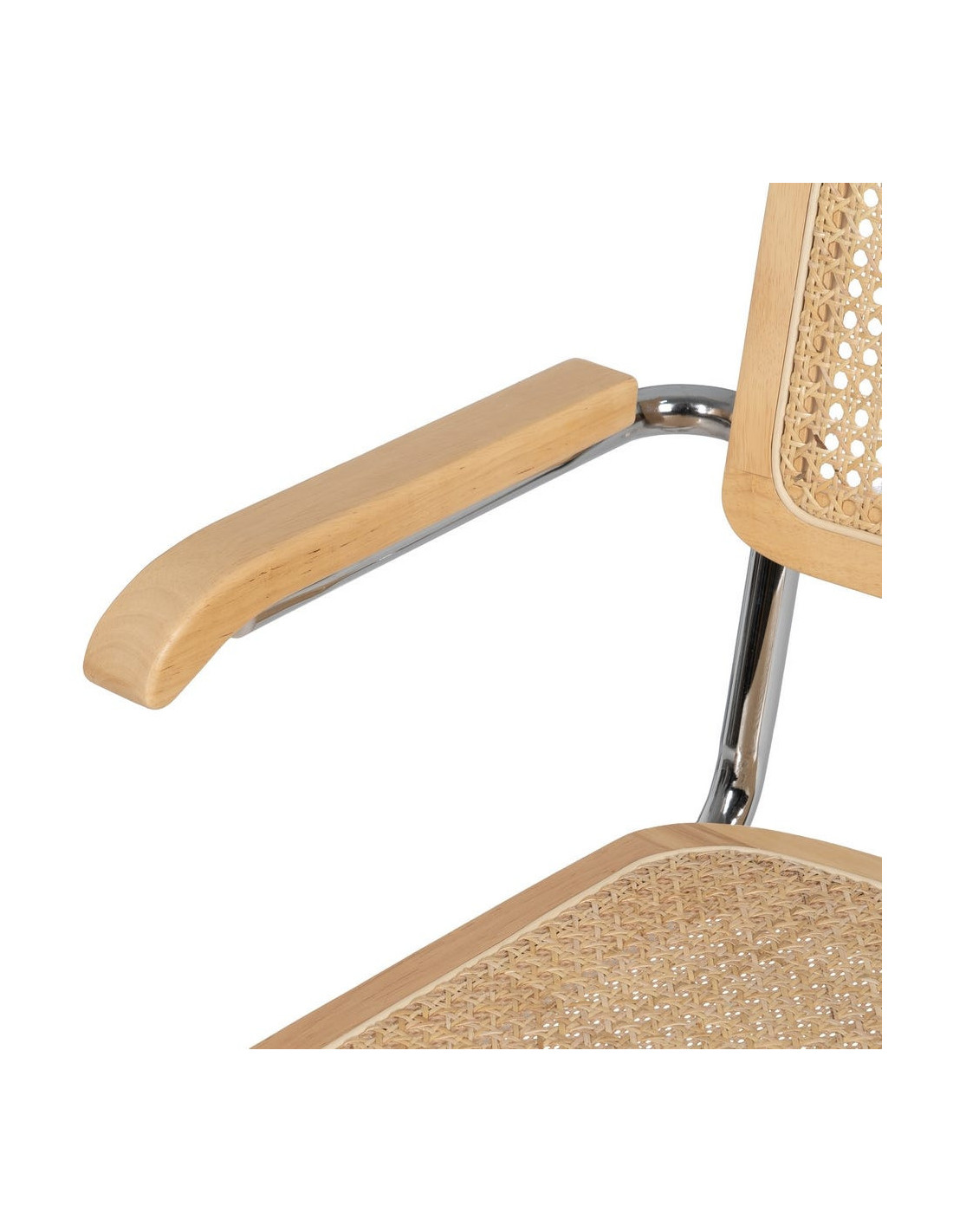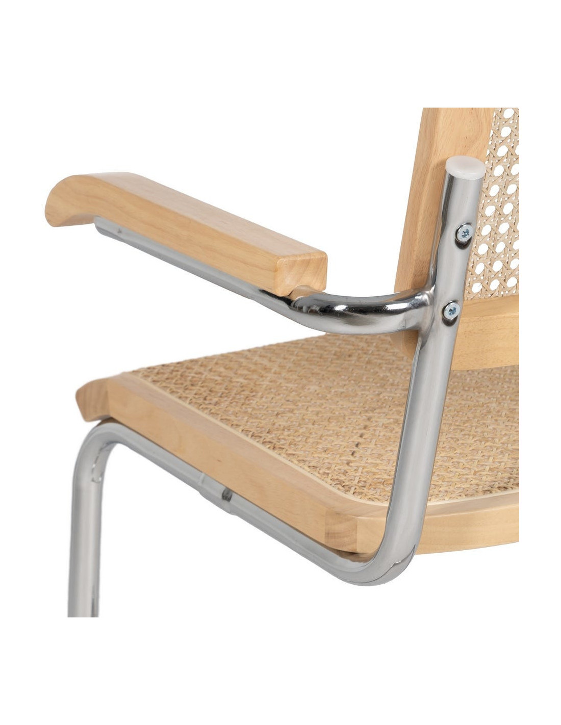 Fauteuil de table Style vintage Bauhaus Rotin Naturel Cannage Métal Argenté Bois d'hévéa Orvian (Lot de 2) - 6