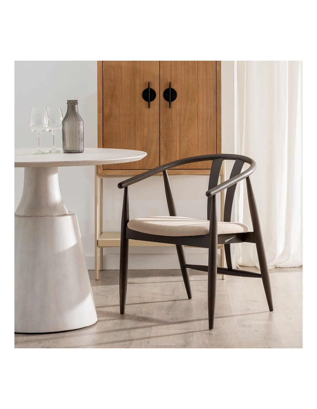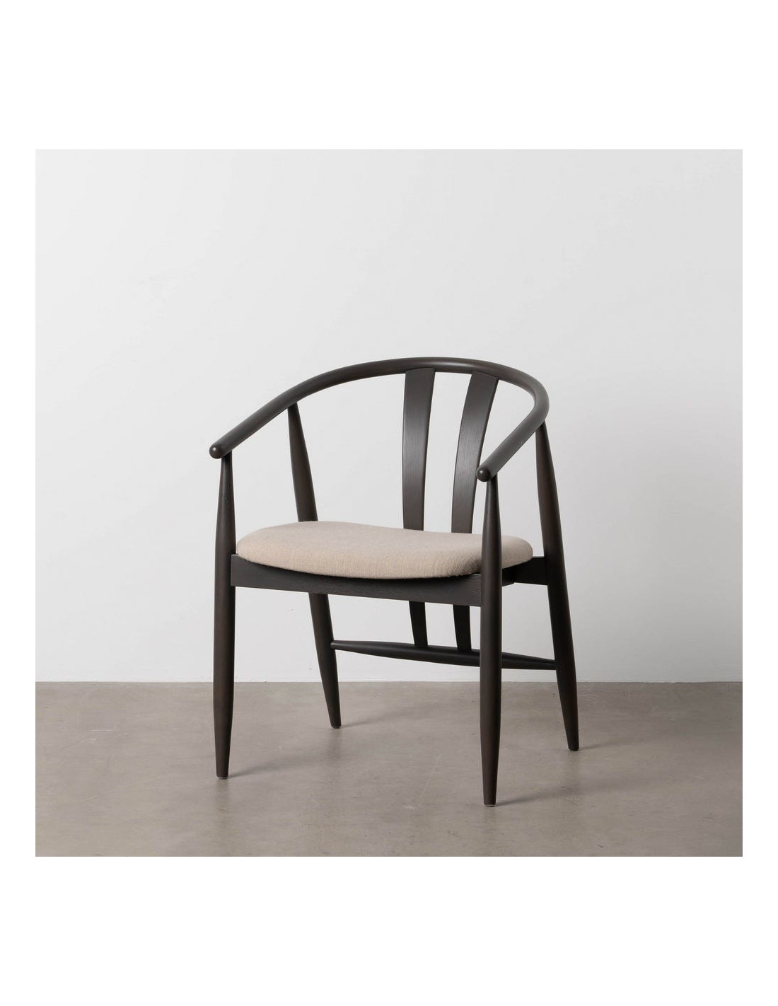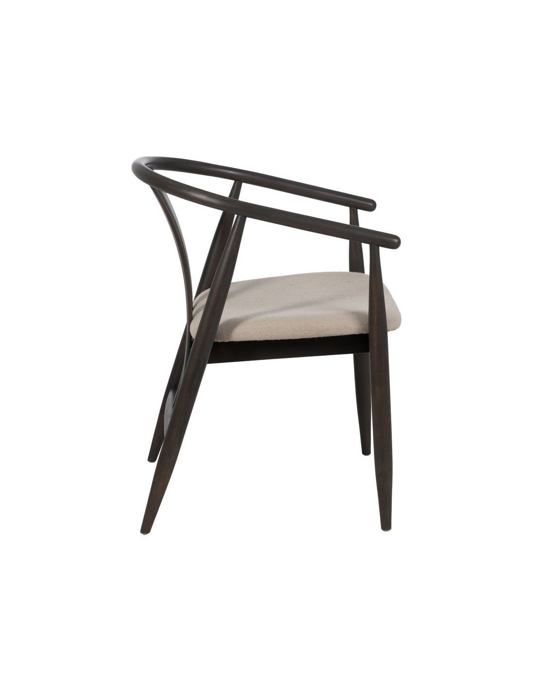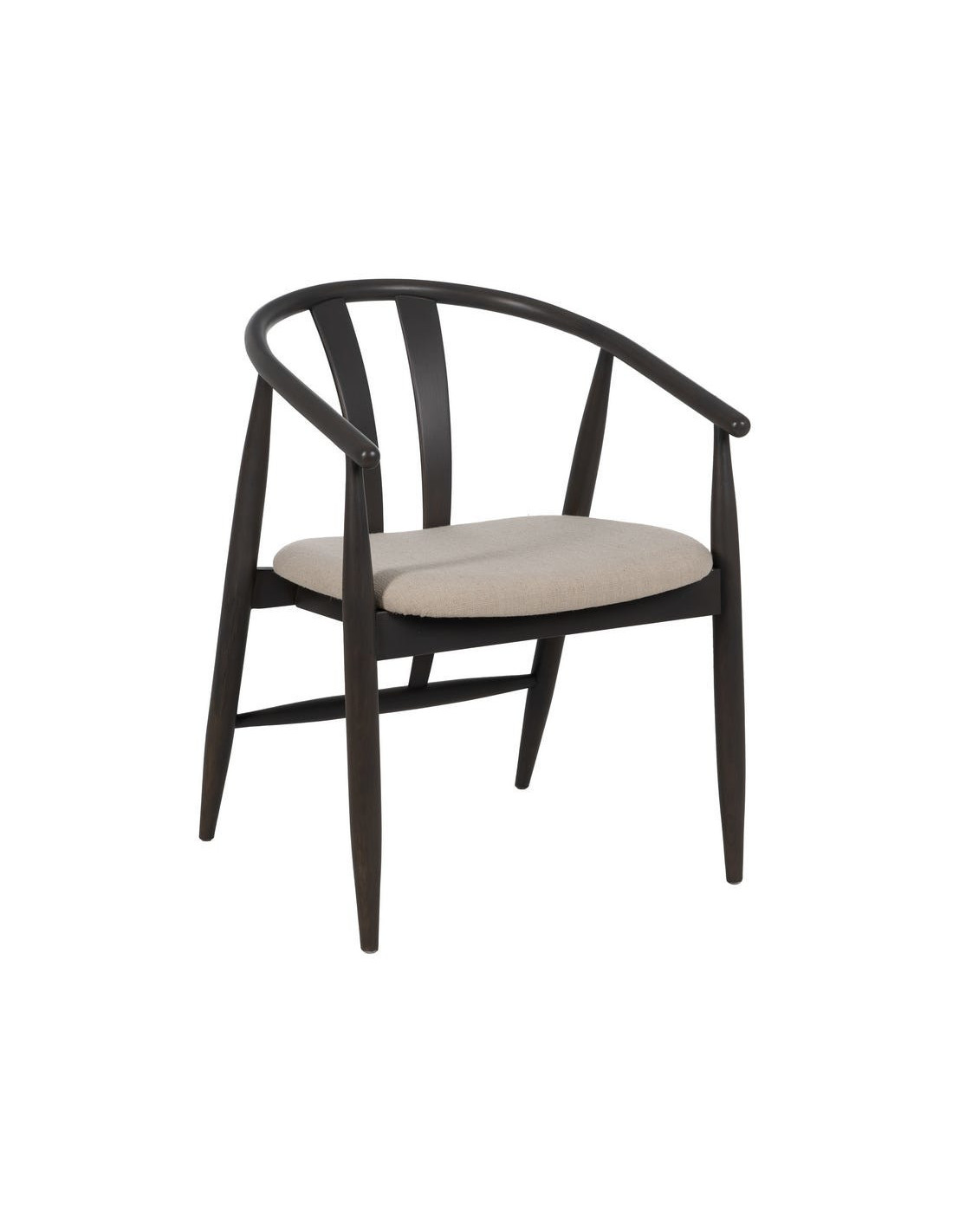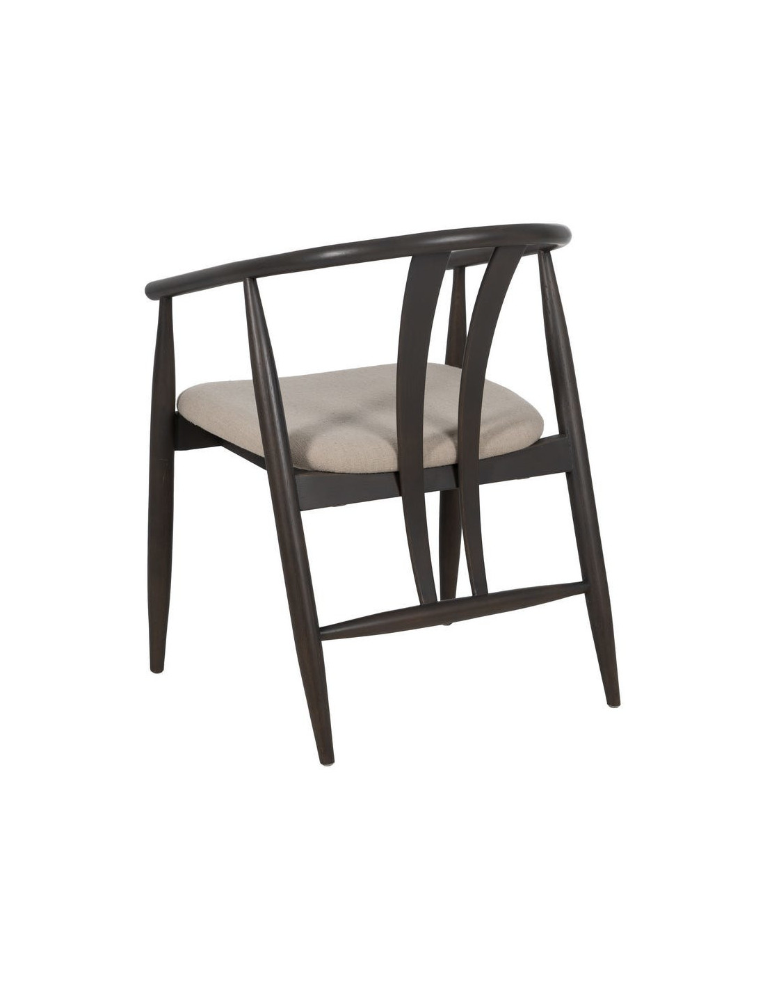 Fauteuil de table vintage scandinave Bois de chêne Noir Tissu Beige Quinio