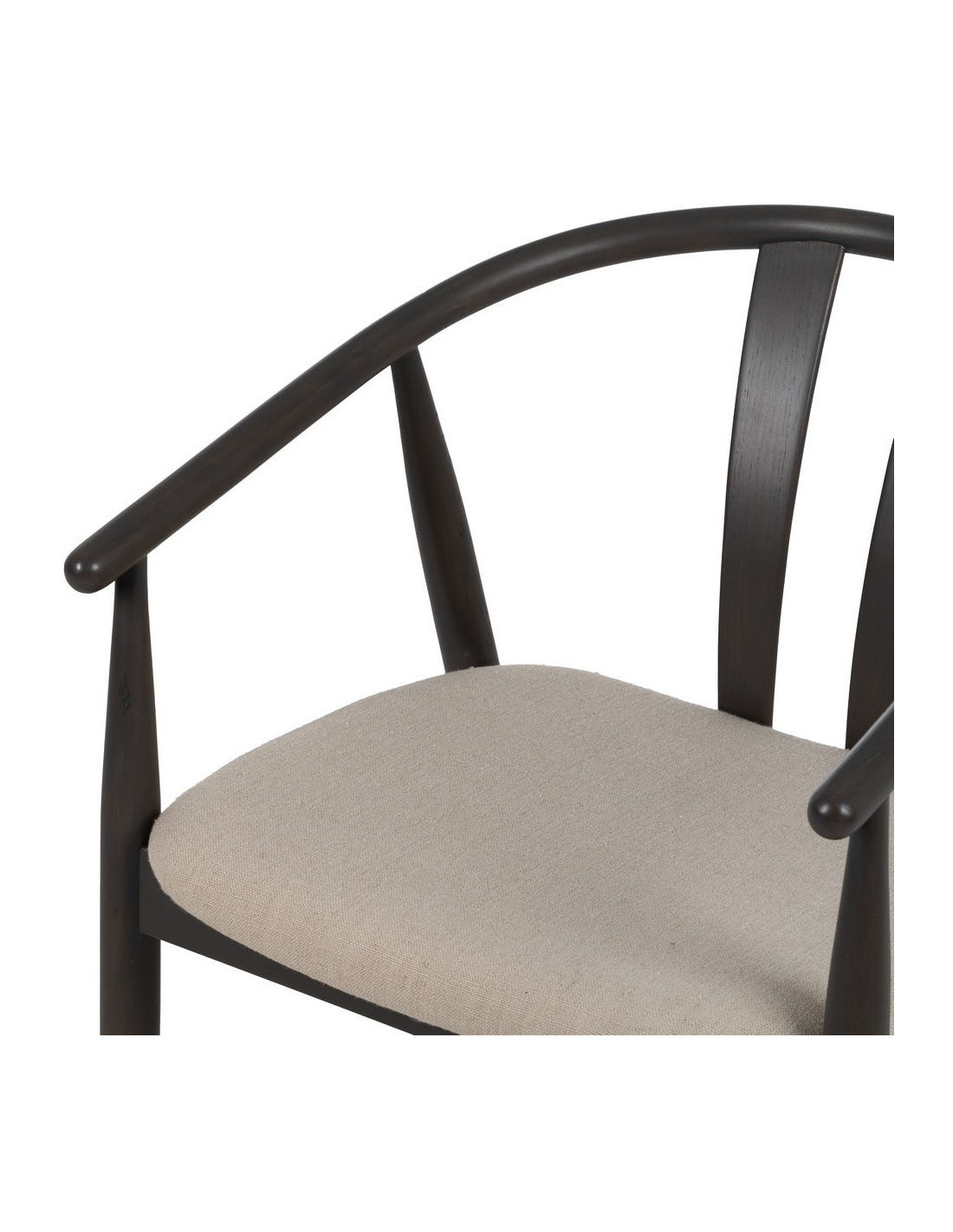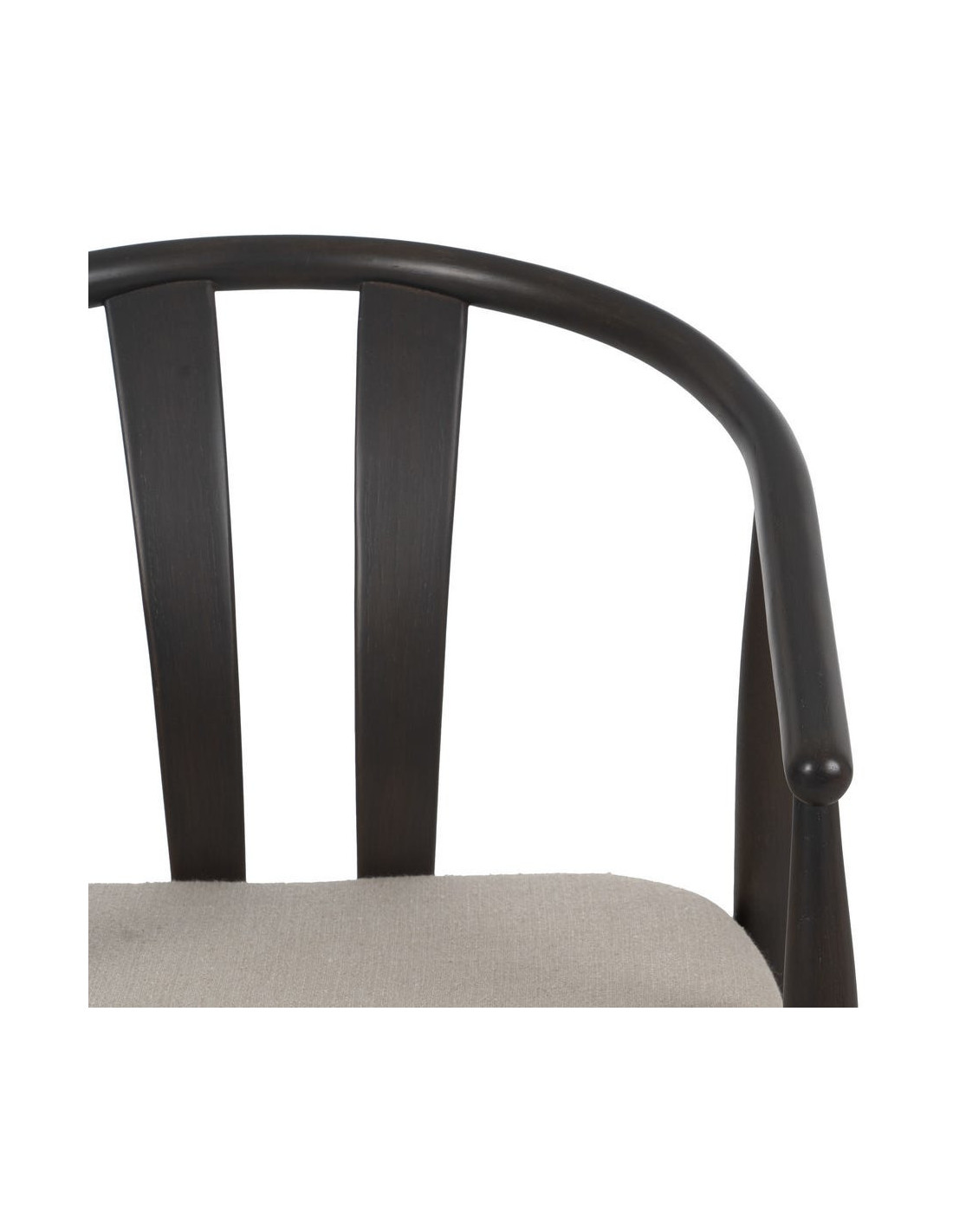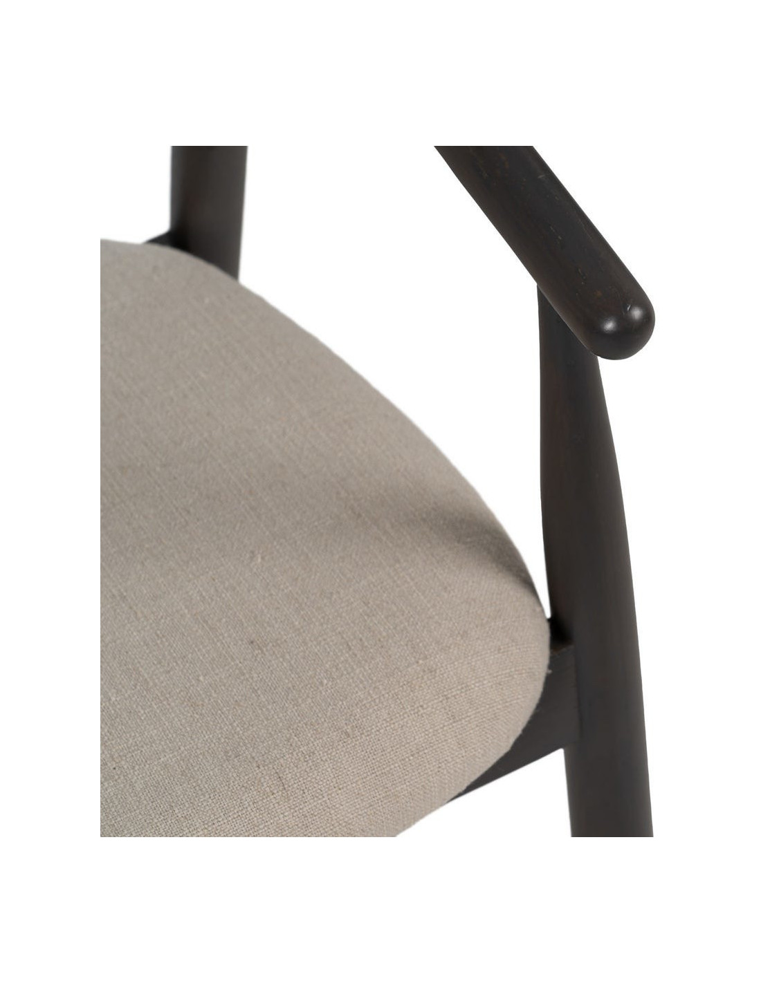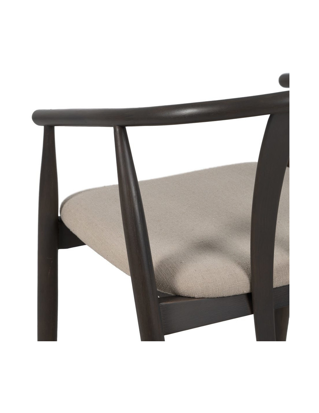Fauteuil de table vintage scandinave Bois de chêne Noir Tissu Beige Quinio - 5