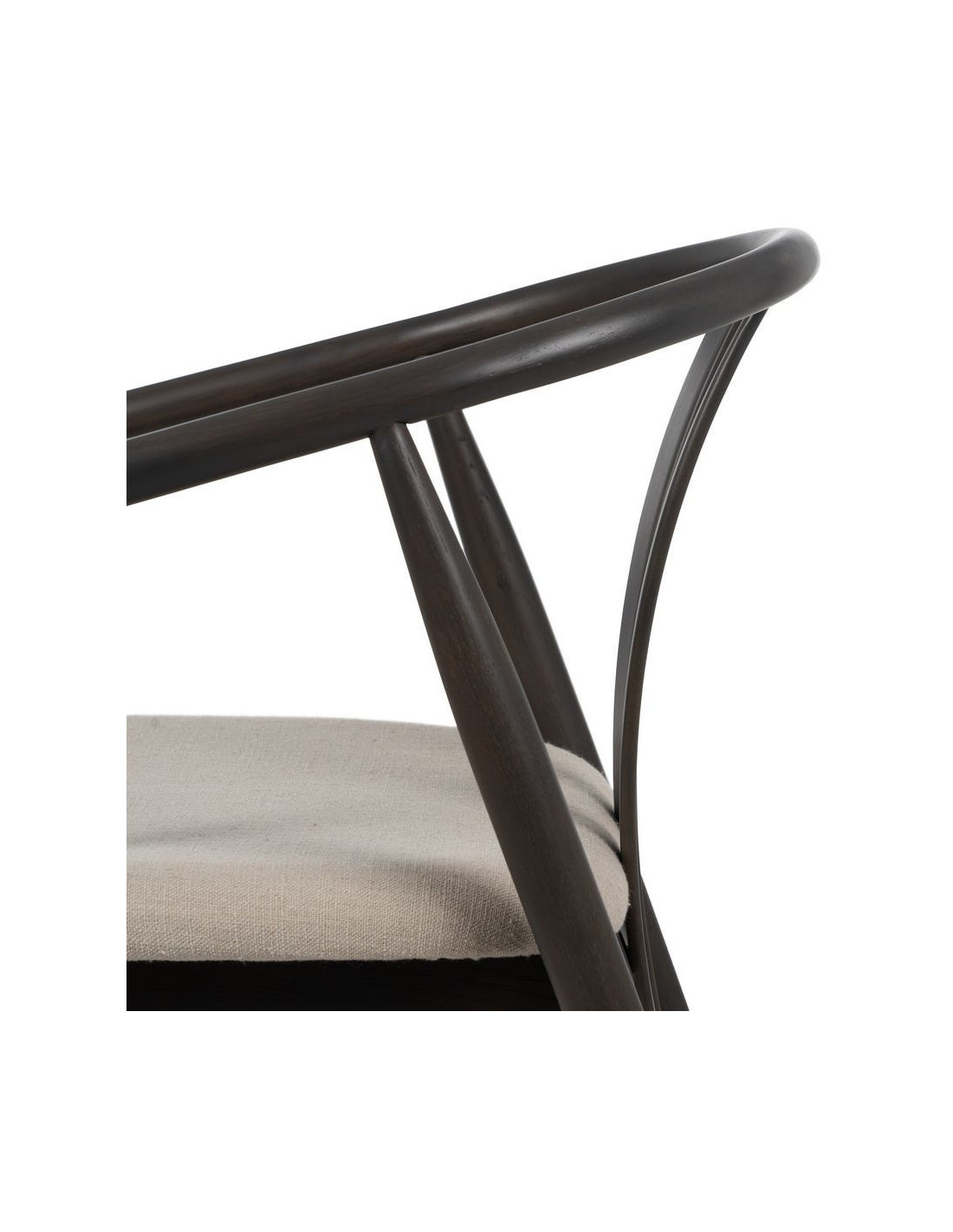 Fauteuil de table vintage scandinave Bois de chêne Noir Tissu Beige Quinio - 4