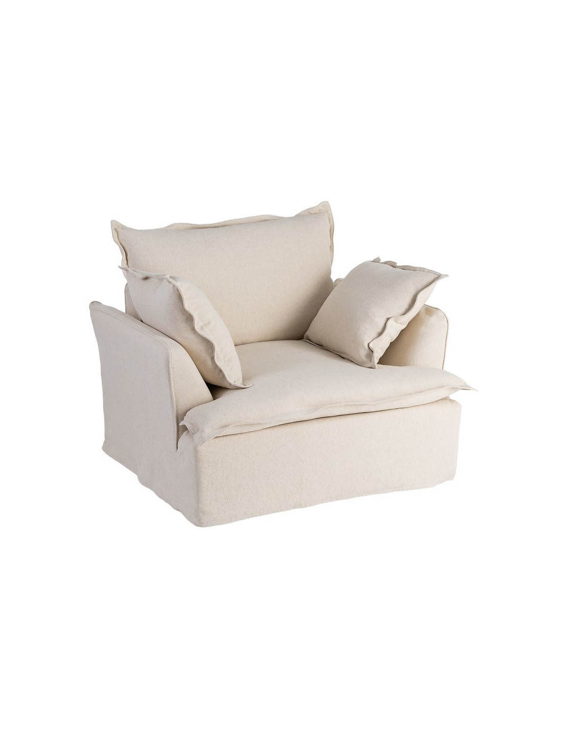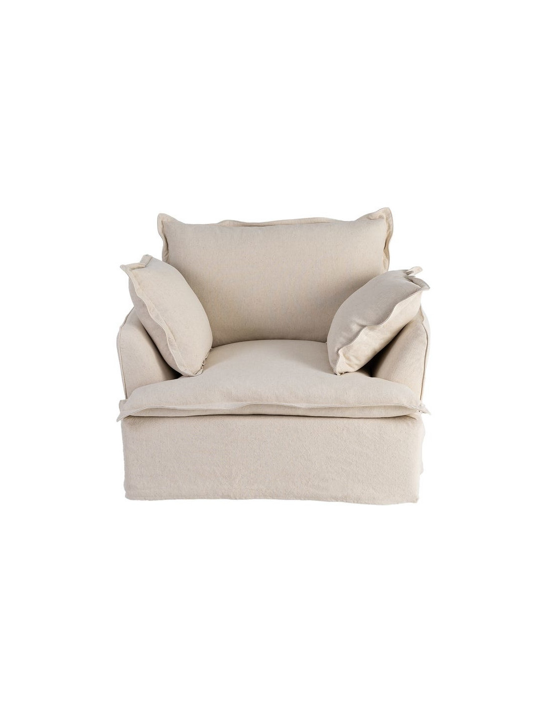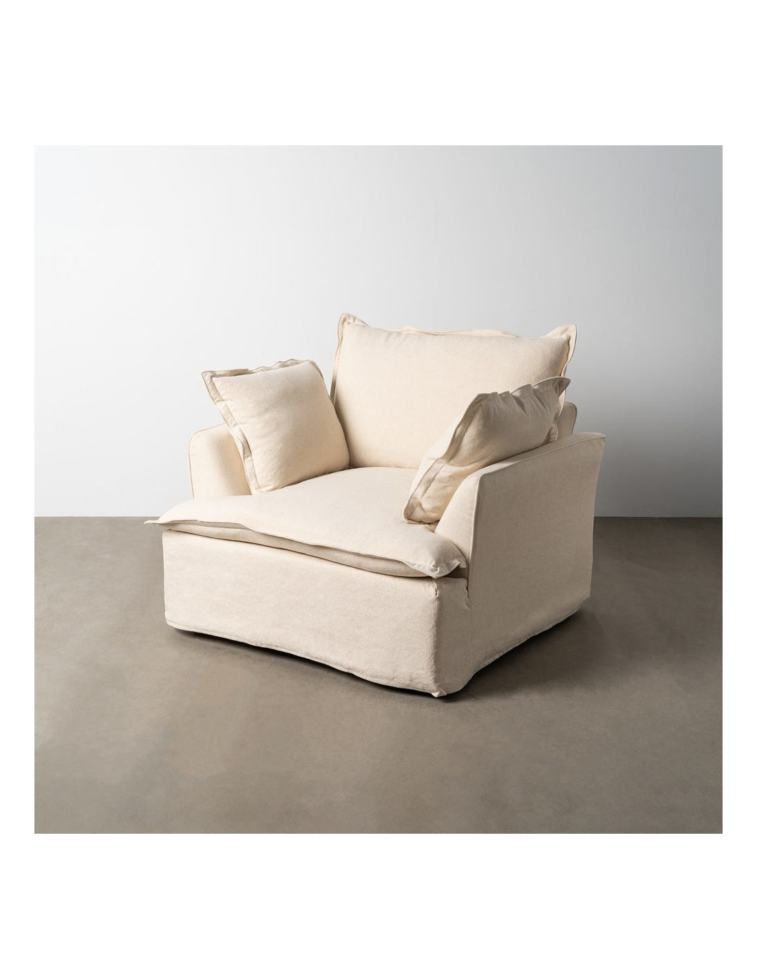 Fauteuil design cocooning Coton Lin Beige Bois de pin Oryza