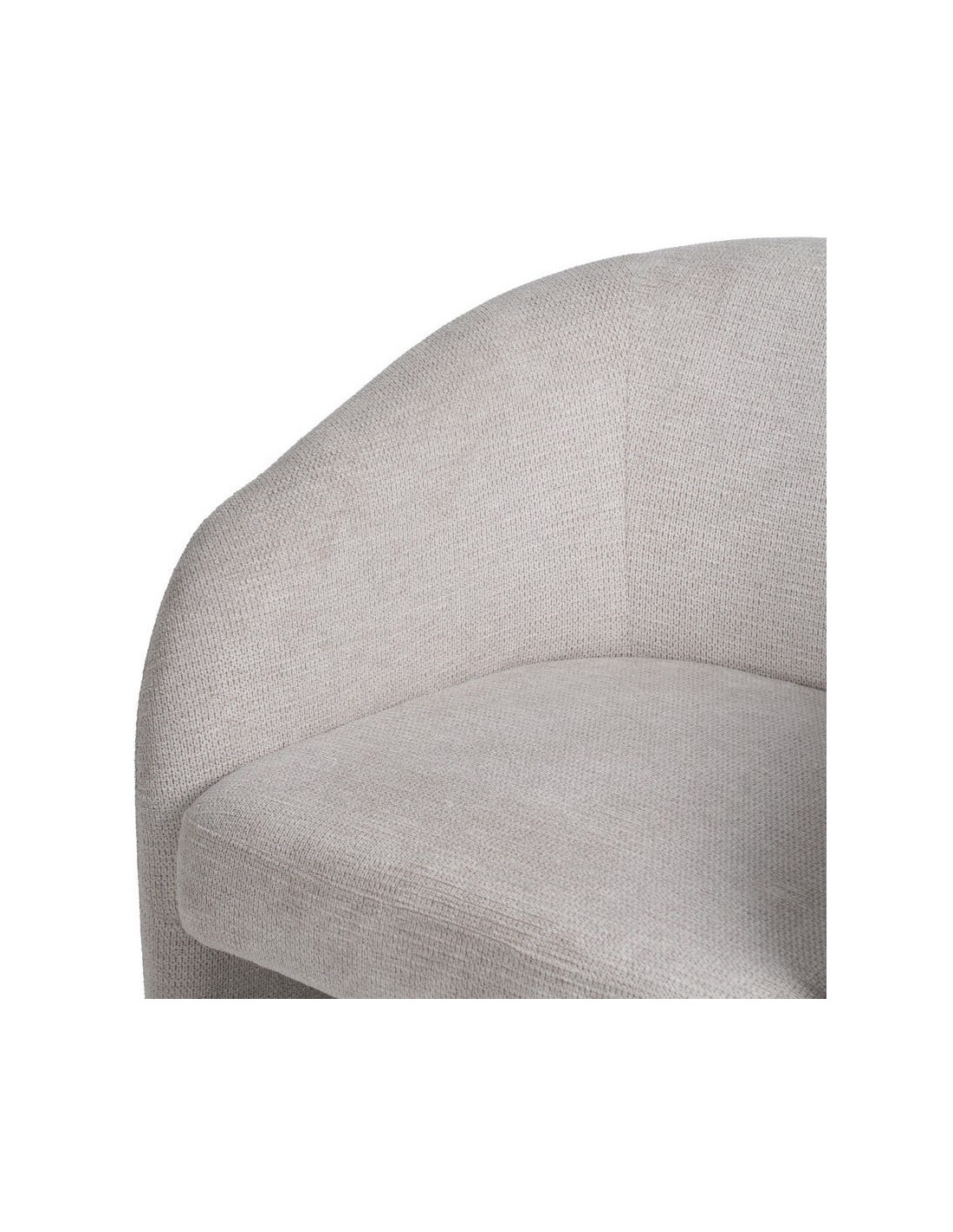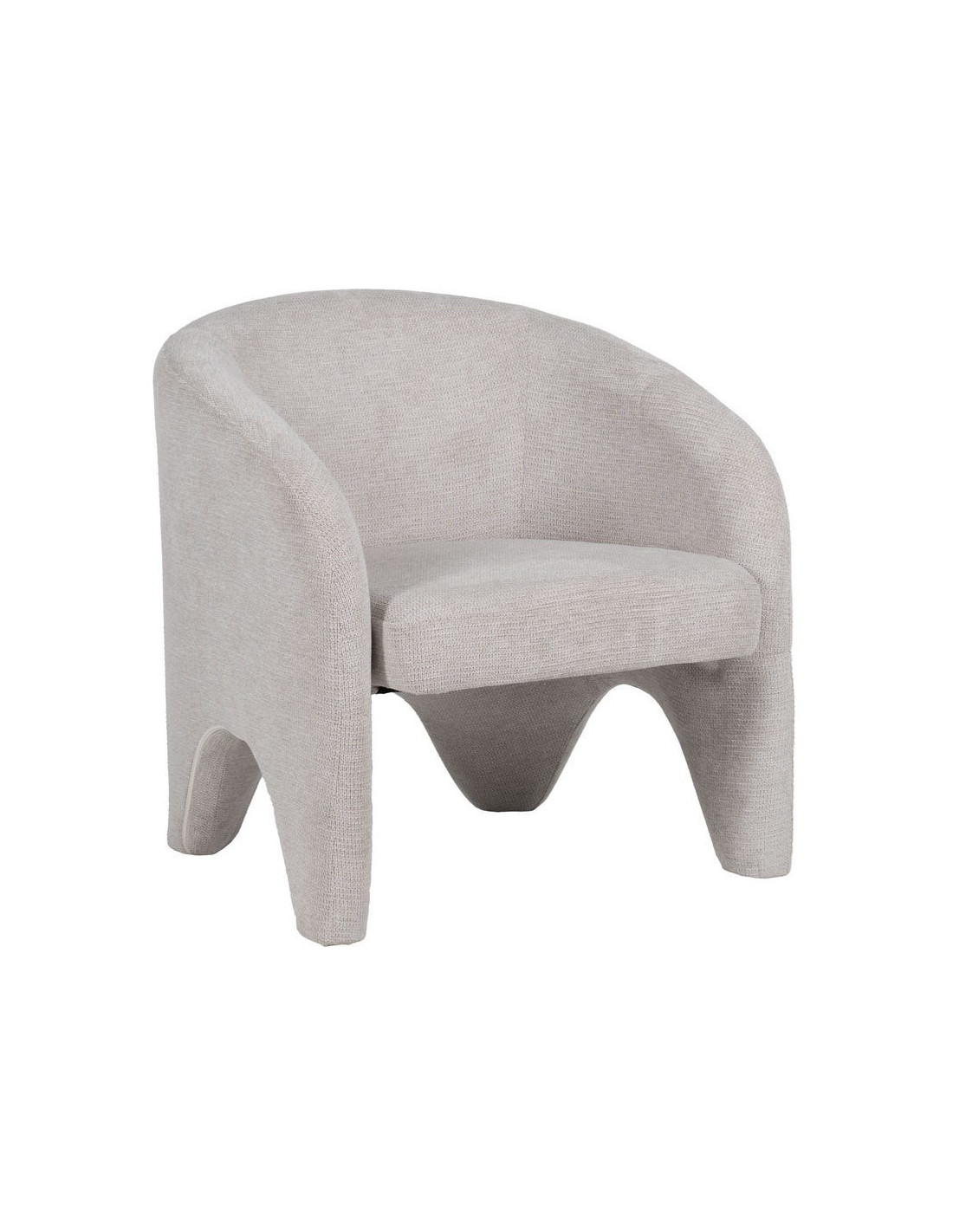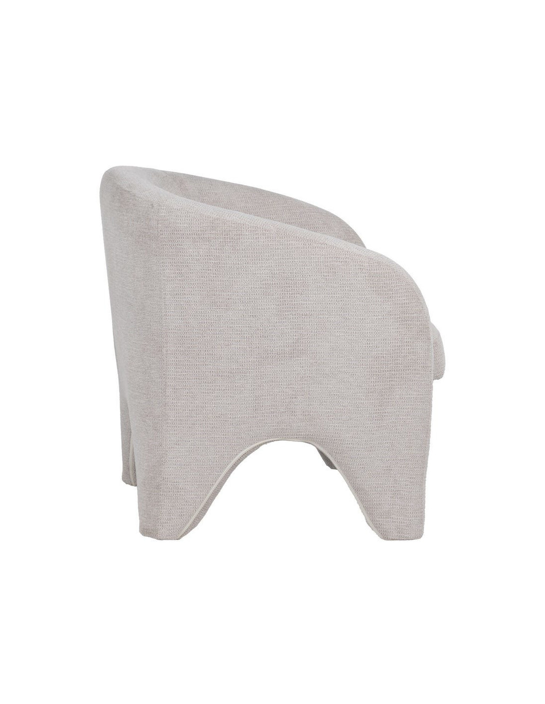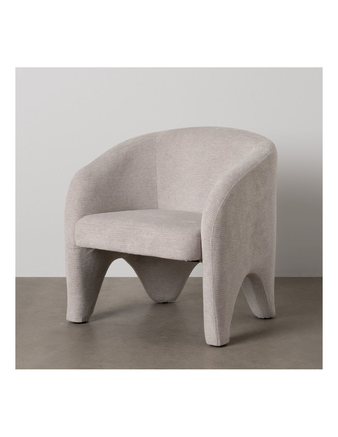 Fauteuil design organique moderne style années 70 revisité Tissu Beige Bois Métal Solimio