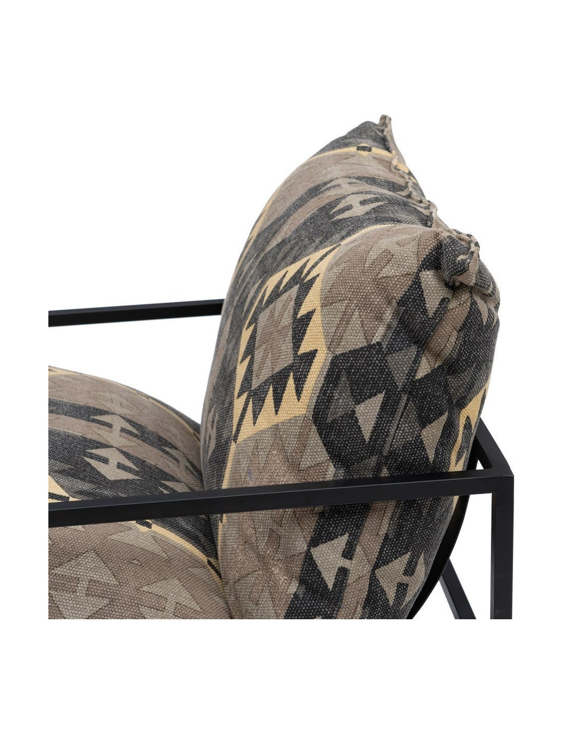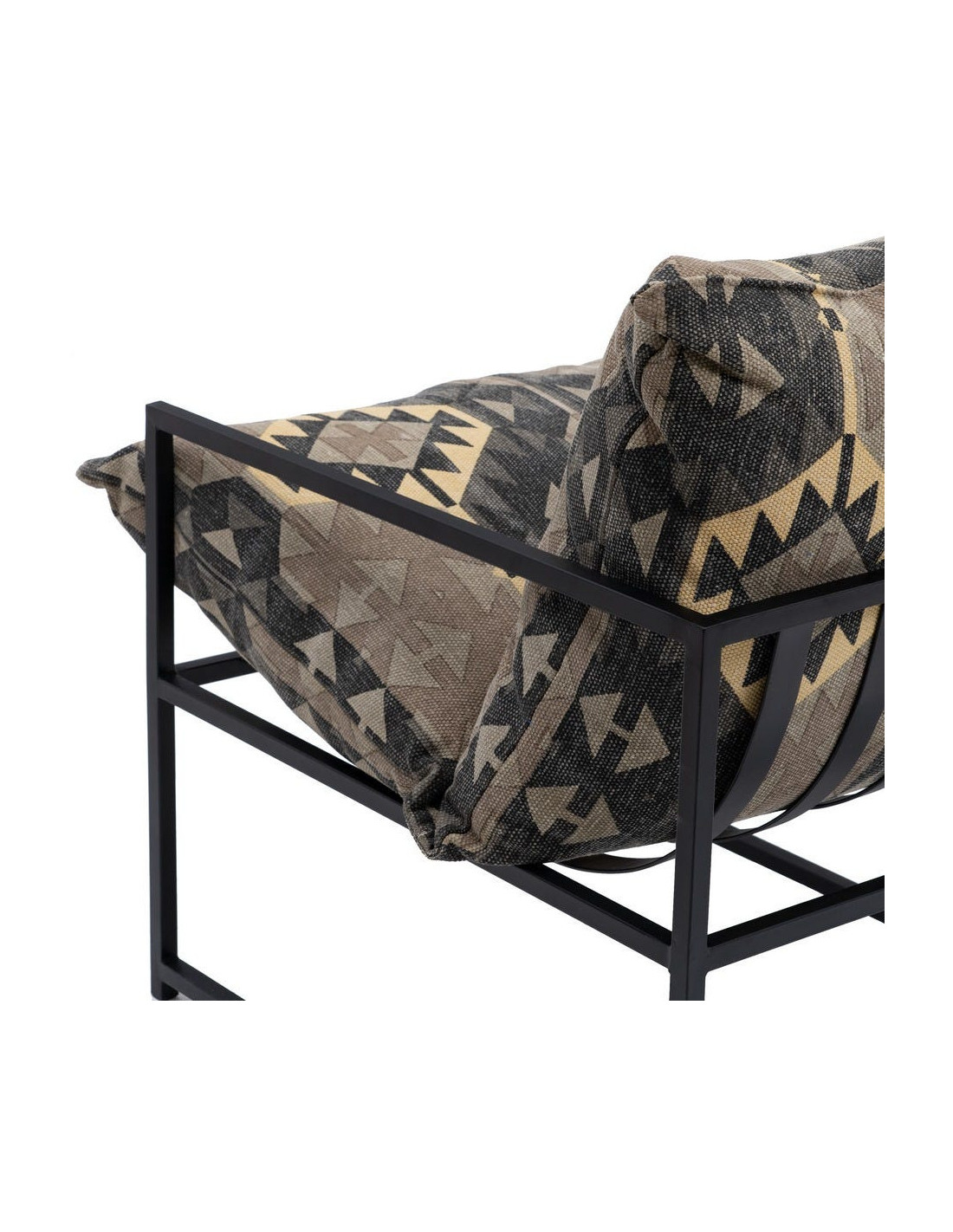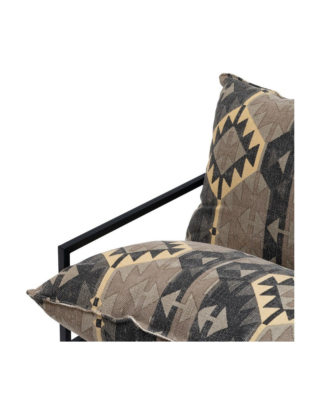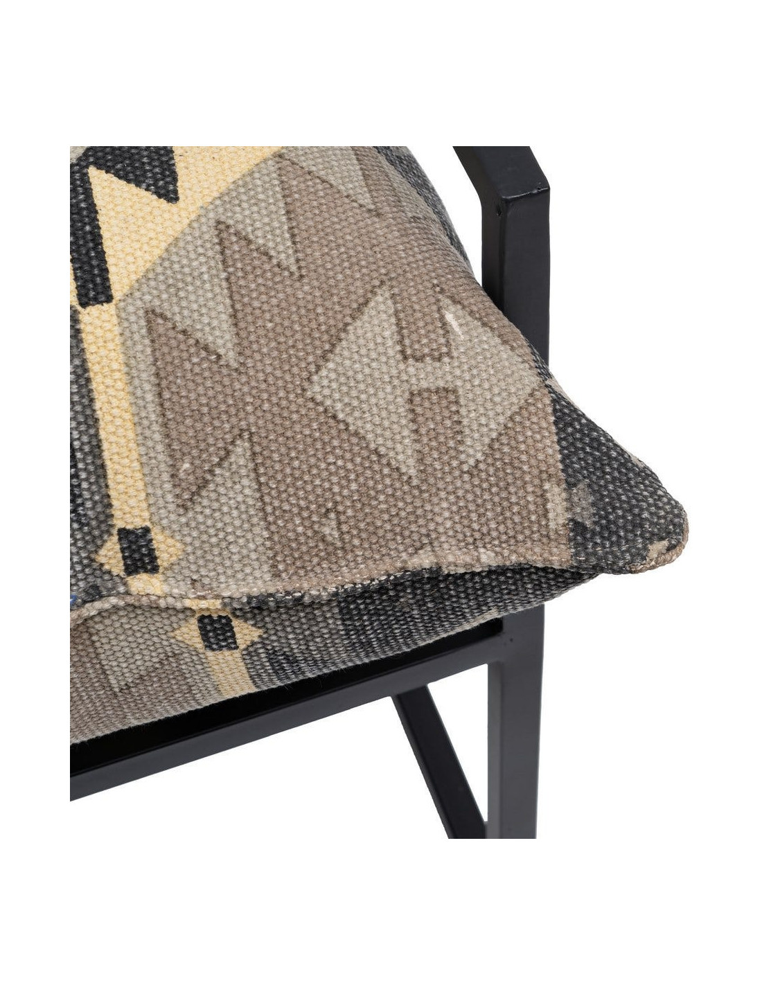 Fauteuil ethnique bohème chic Coton Taupe Motif géométrique Métal Noir Nomado