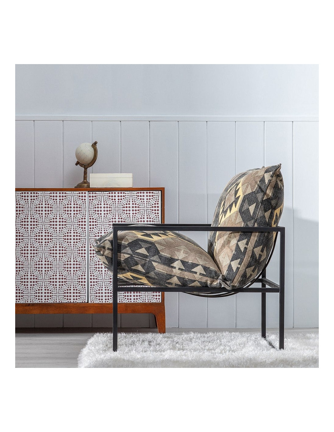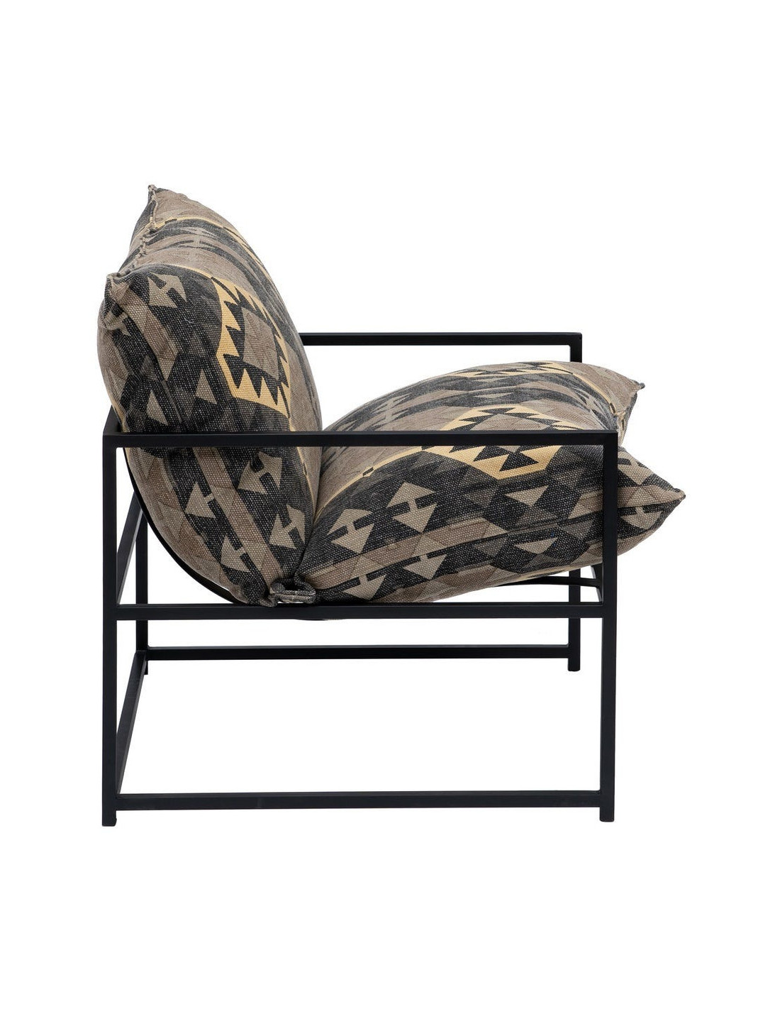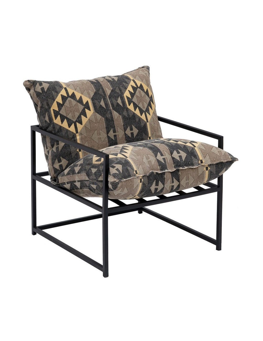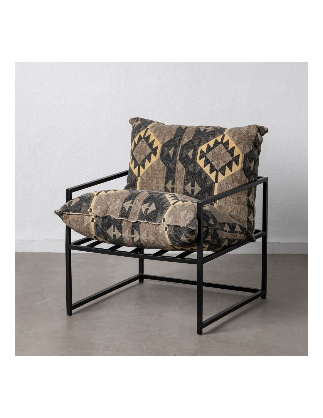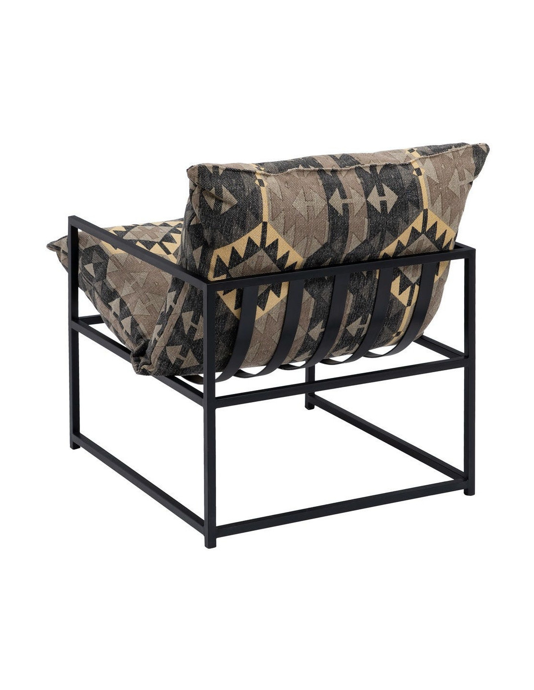 Fauteuil ethnique bohème chic Coton Taupe Motif géométrique Métal Noir Nomado