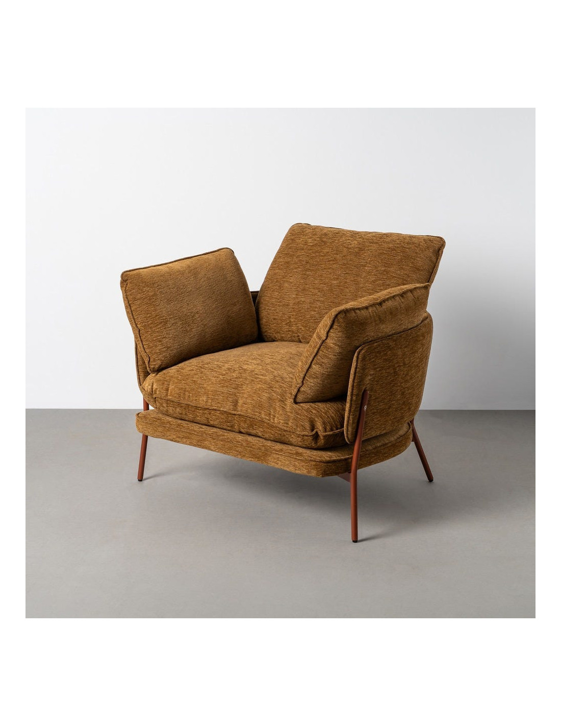 Fauteuil lounge design rétro seventies Tissu Marron clair Métal Kandor