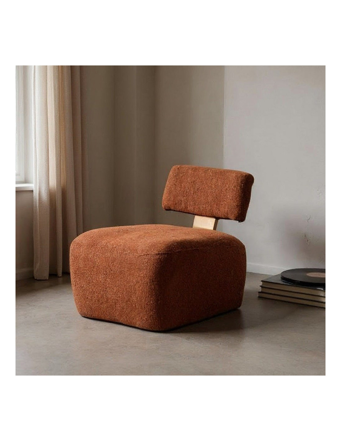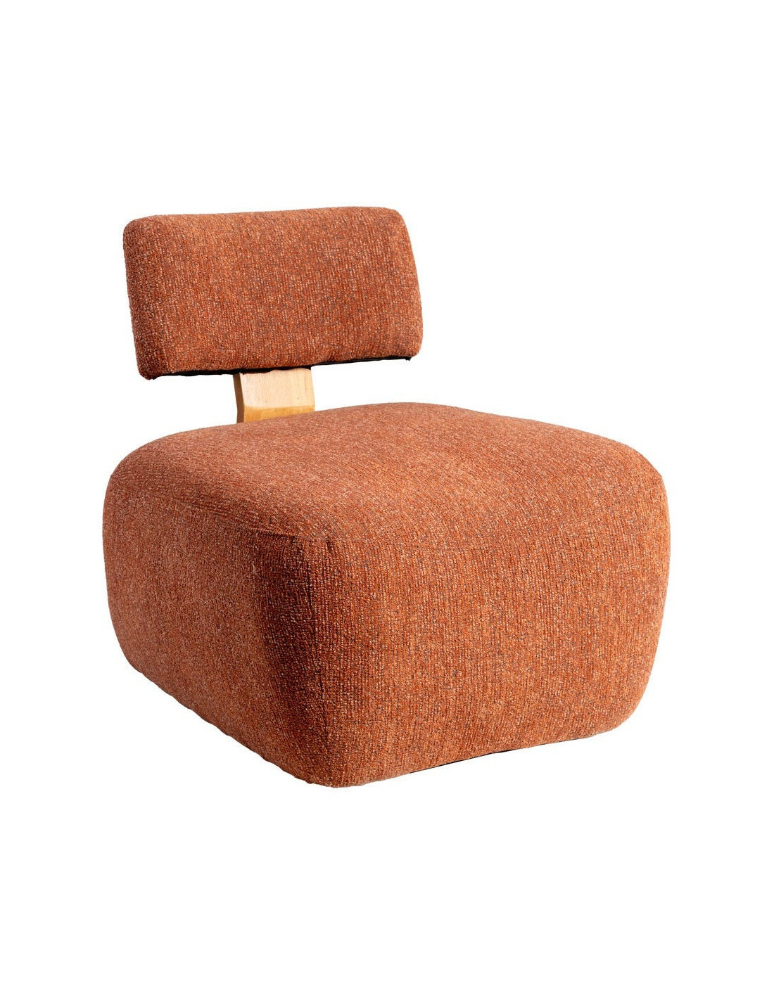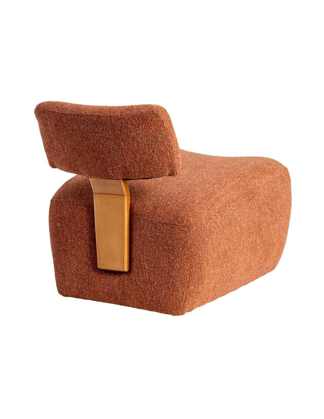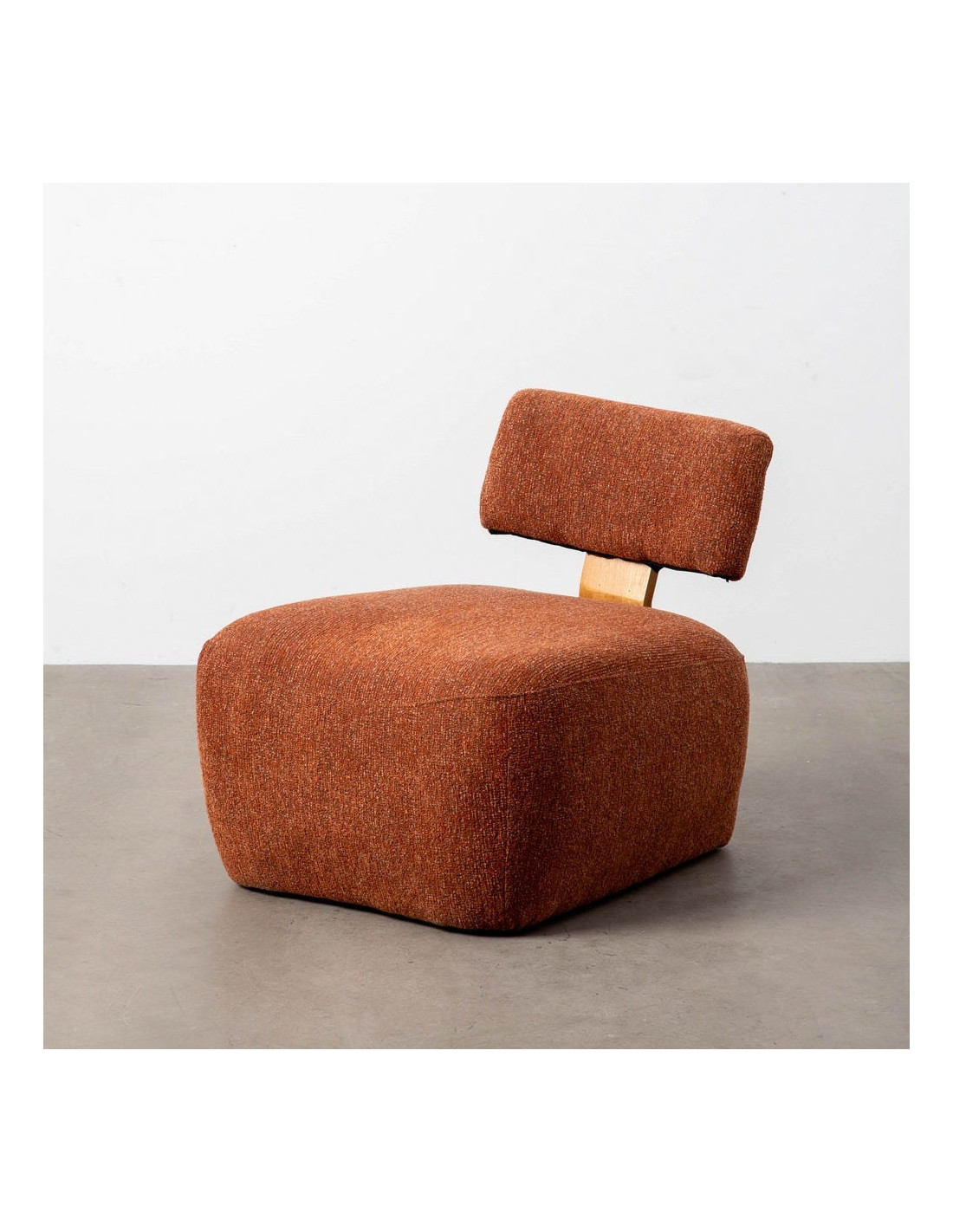 Fauteuil original moderne en Tissu Rouge brique Chiné Bois multplis Naturel Ribad - 1