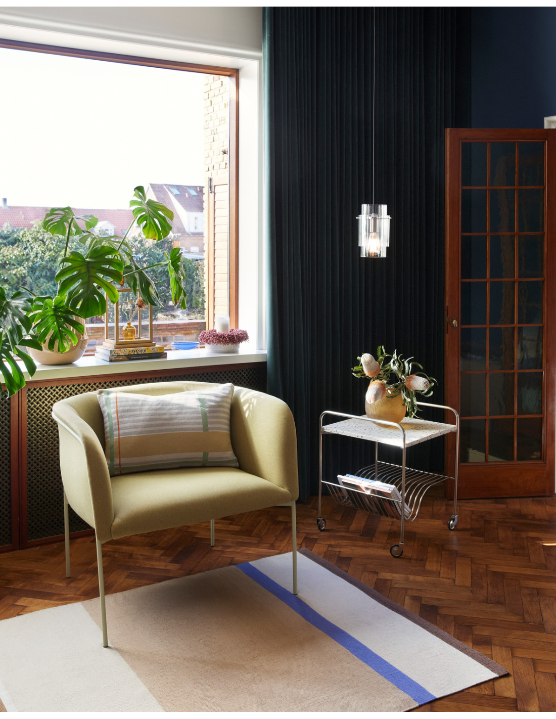 Fauteuil moderne arrondi assise large en Tissu Jaune Métal Vert clair Eyrie