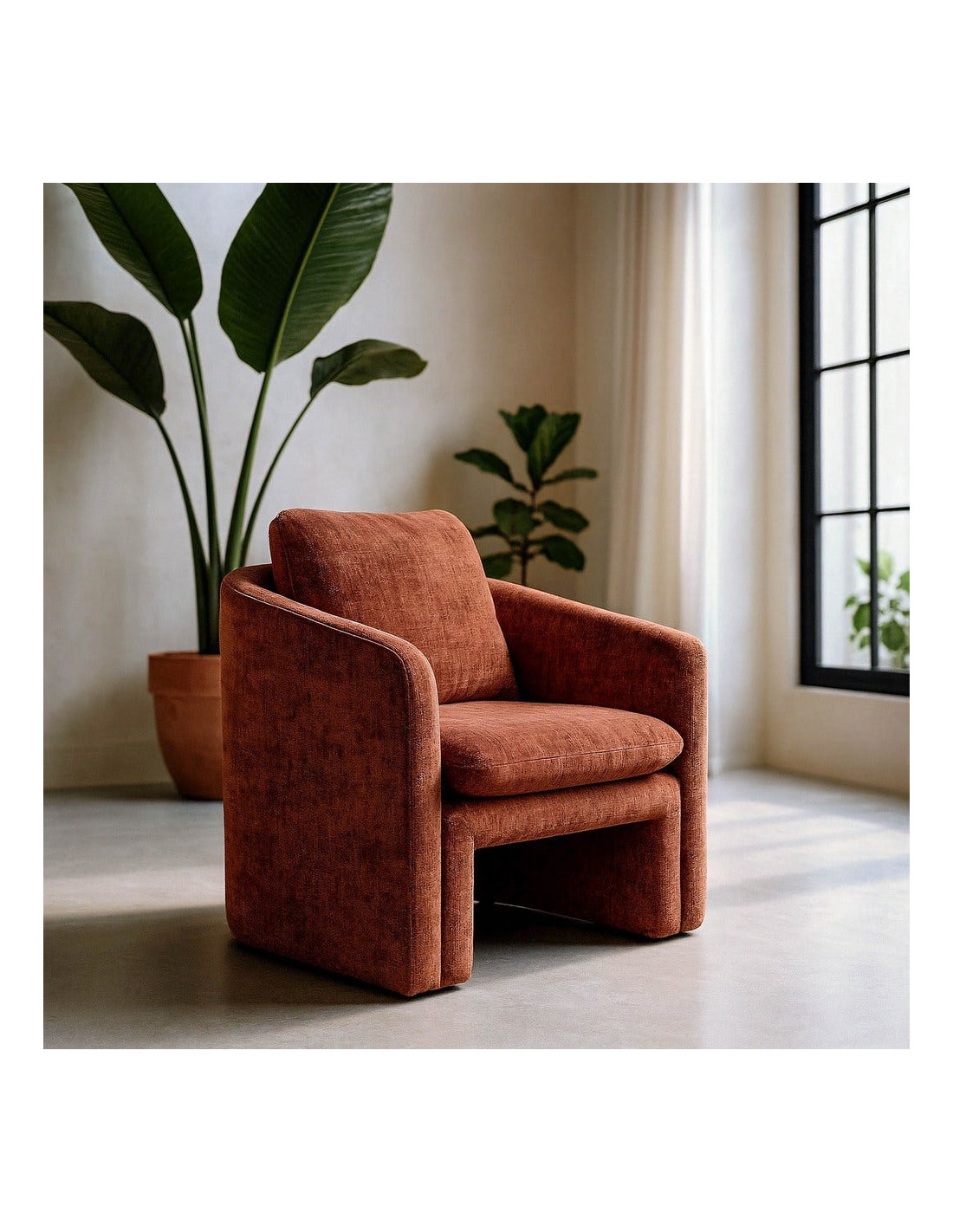 Fauteuil moderne chic en Tissu Rouge brique Bois MDF Doralya