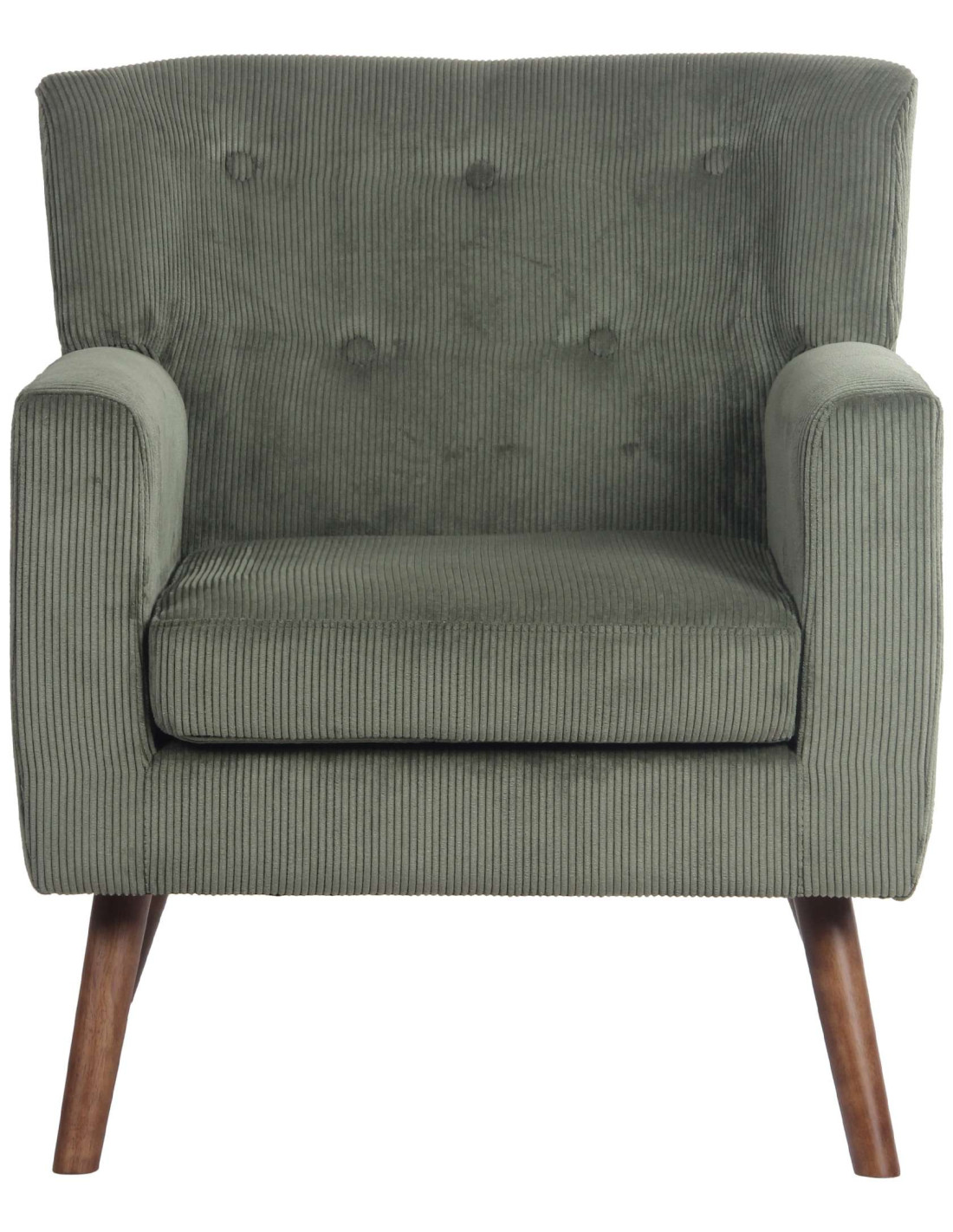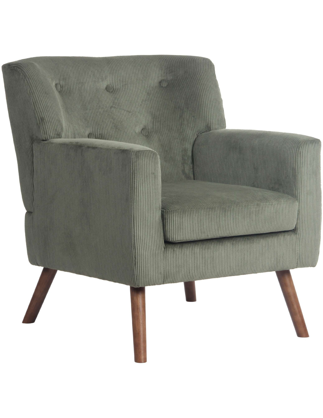 Fauteuil moderne chic Velours côtelé Vert Bois Marron Kirno - 1