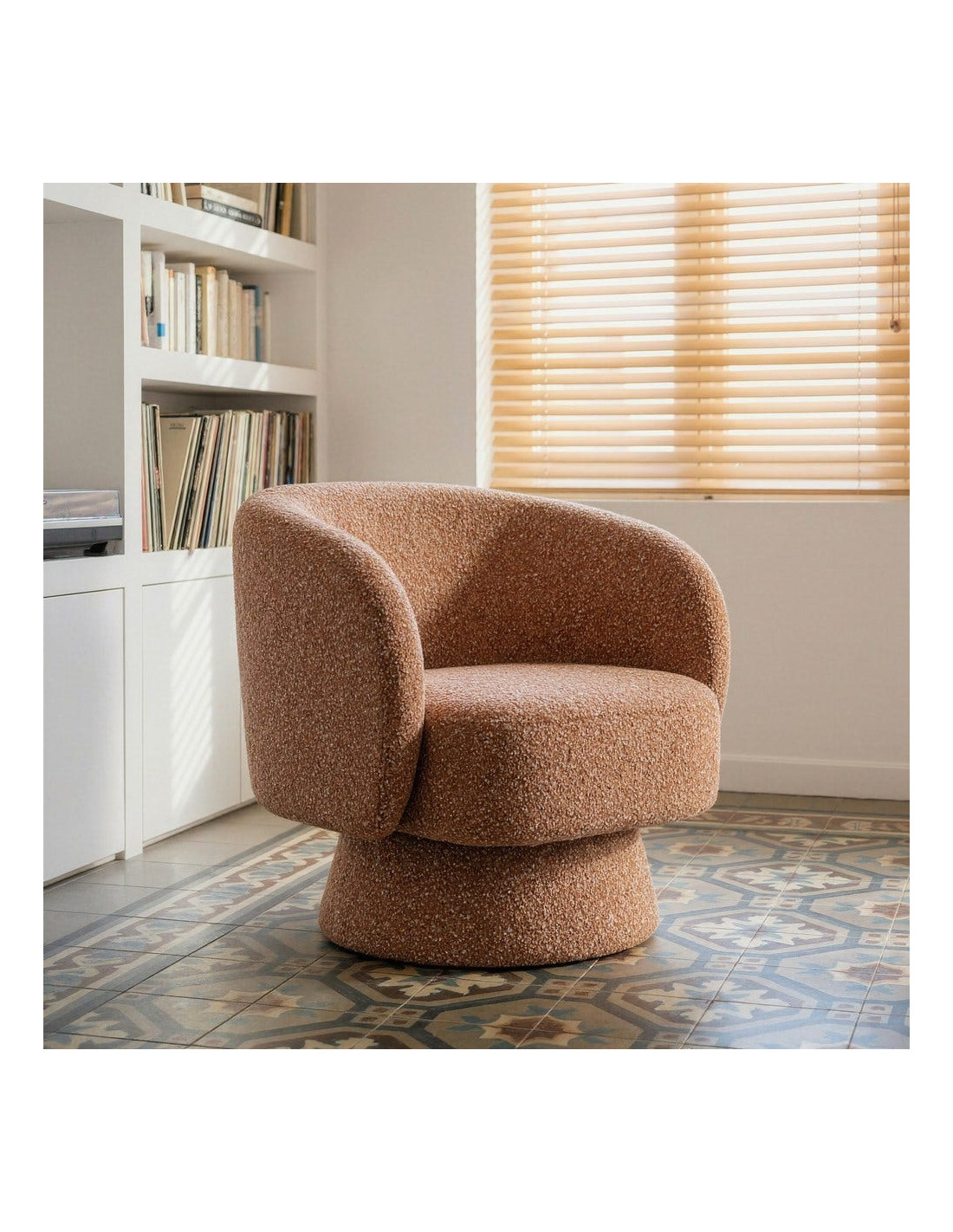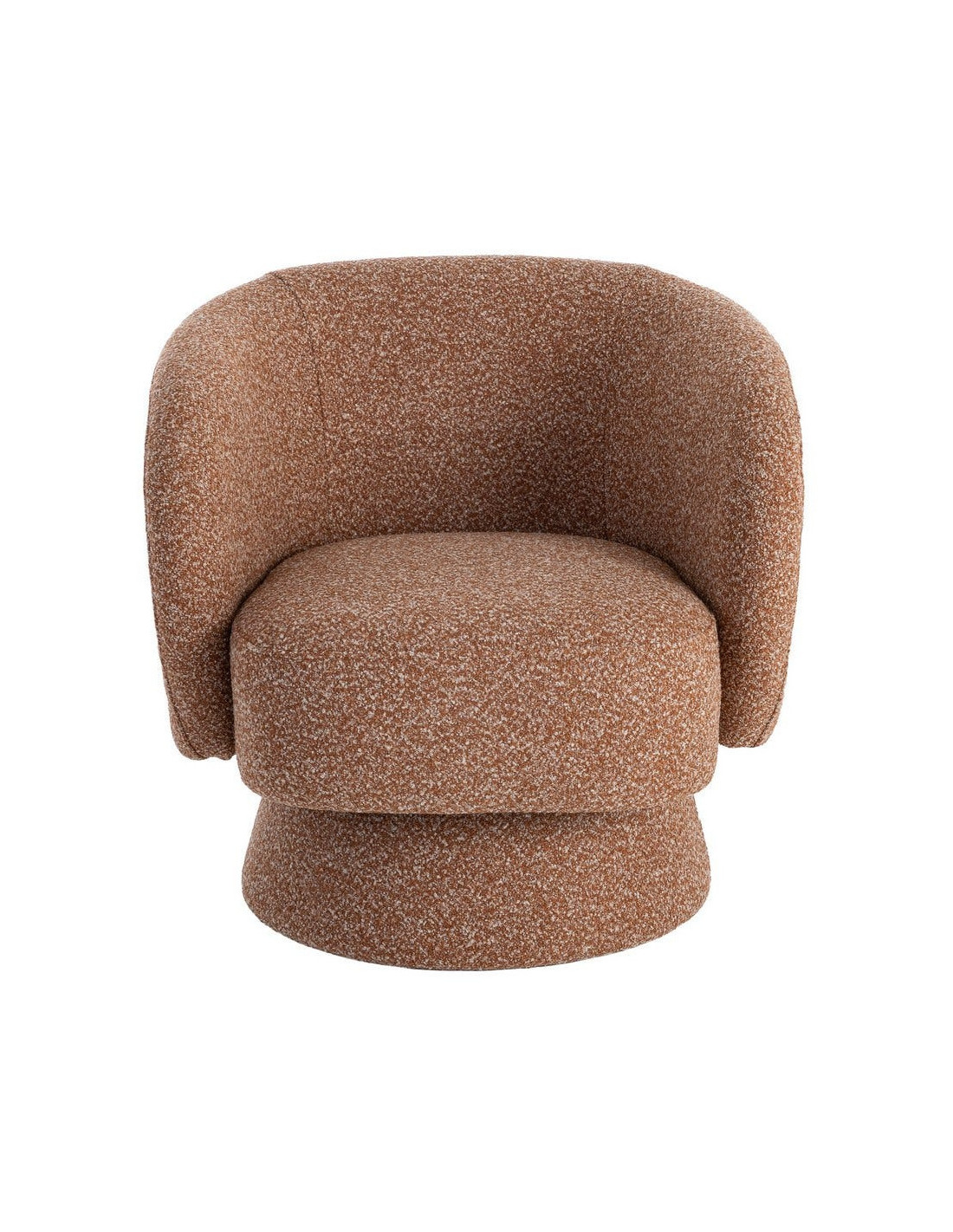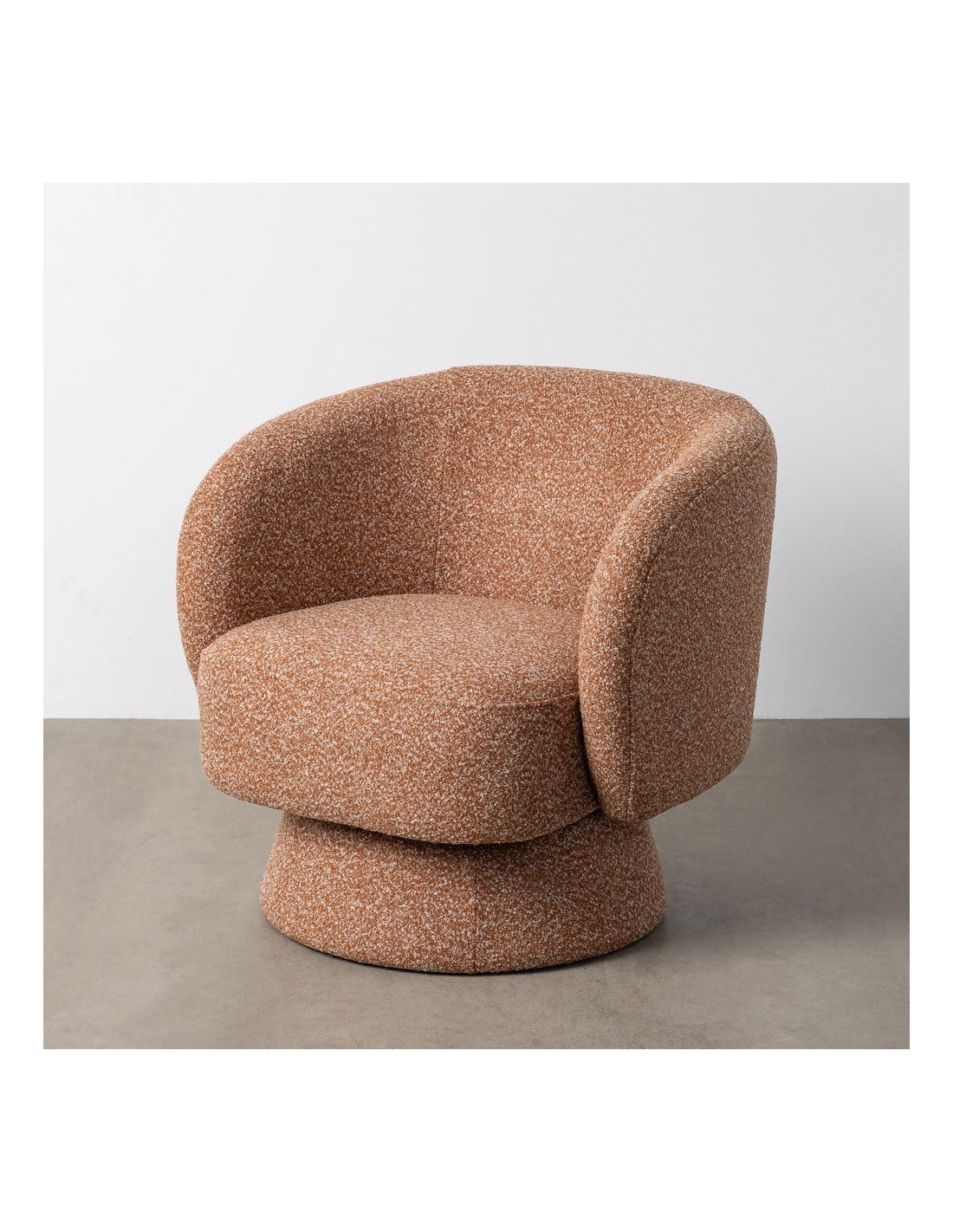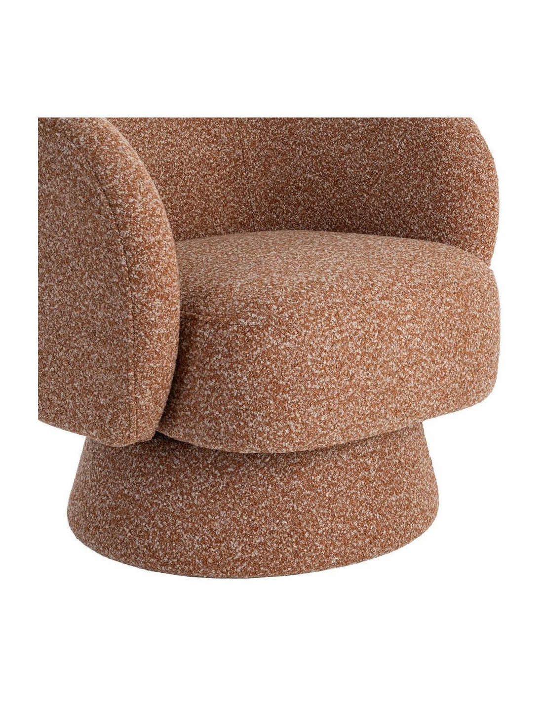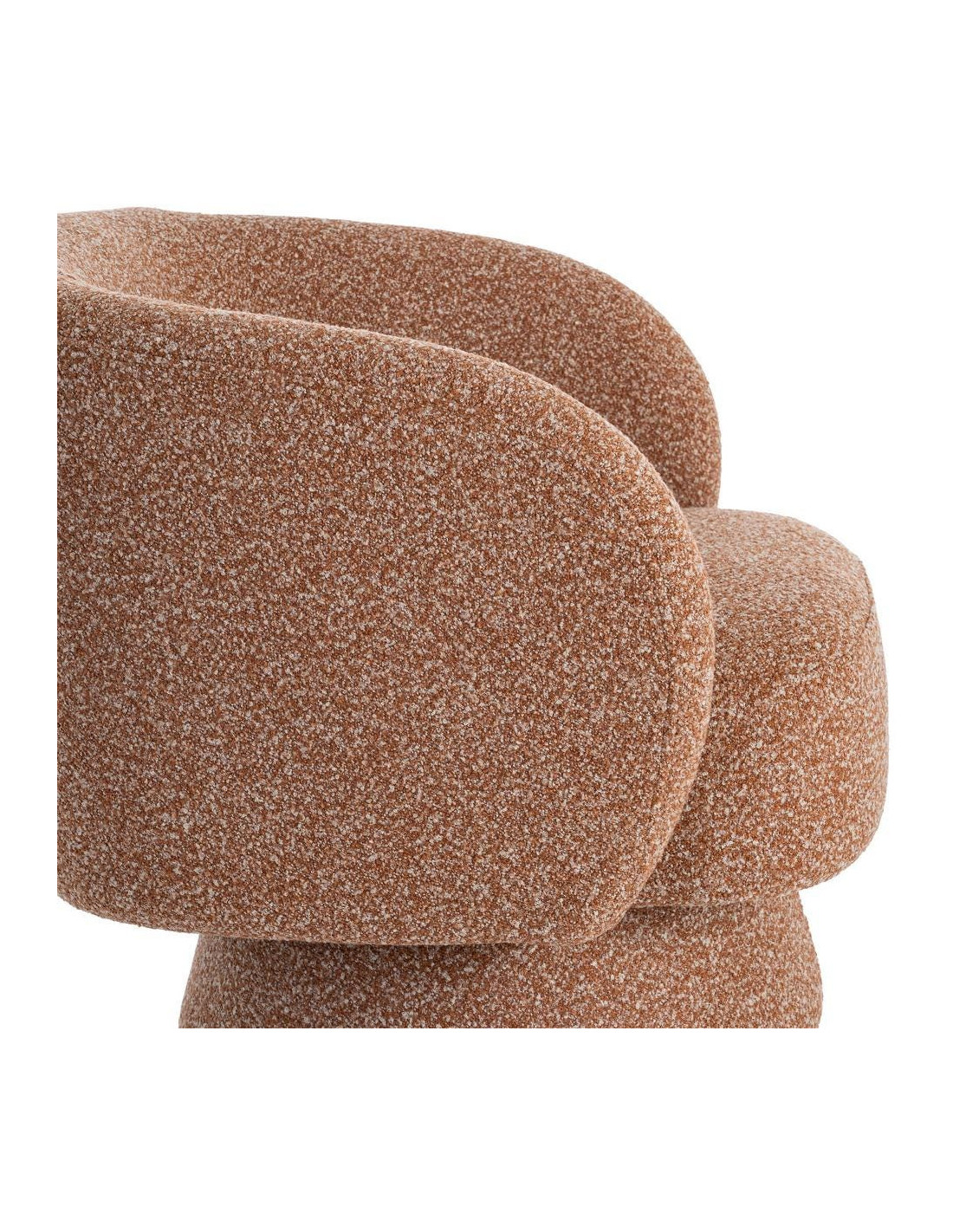 Fauteuil cocooning 78 cm en tissu rose saumon chiné. Design moderne et confortable. Norme EN 16139. Repose-pieds optionnel.