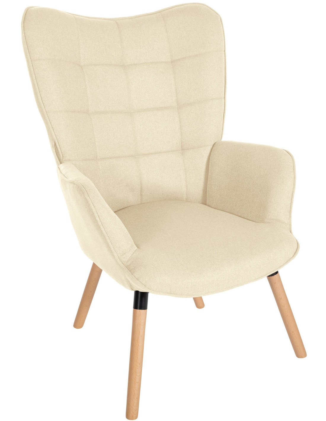 Fauteuil moderne scandinave en Tissu Blanc crème Bois de hêtre Naturel Mazzio
