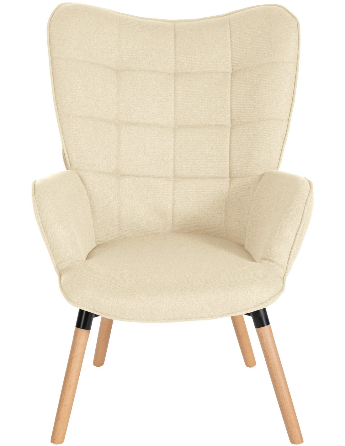 Fauteuil moderne scandinave en Tissu Blanc crème Bois de hêtre Naturel Mazzio - 1