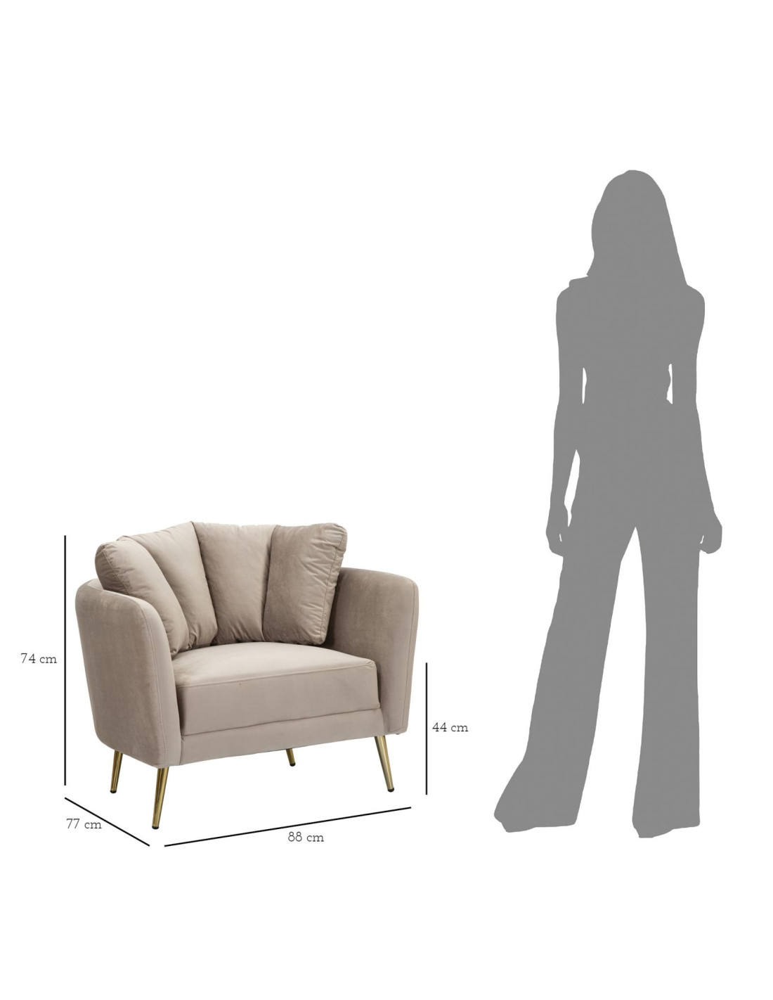 Fauteuil original en Velours Gris Métal Doré Bois d'eucalyptus Kiev