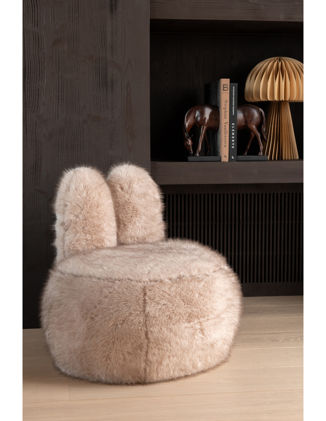 Fauteuil original poils longs Oreilles de lapin en Tissu Taupe Bois Bunny - 1