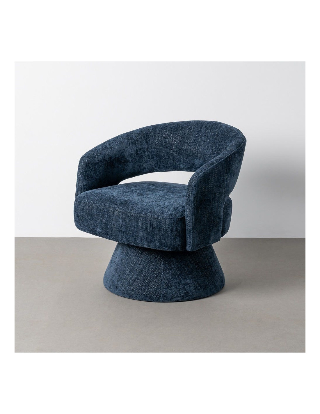 Fauteuil pivotant rétro chic Tissu Bleu Bois MDF Métal Novario