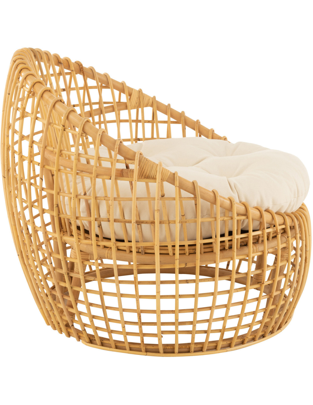 Fauteuil Rond en Rotin Naturel Polyester Blanc Lise