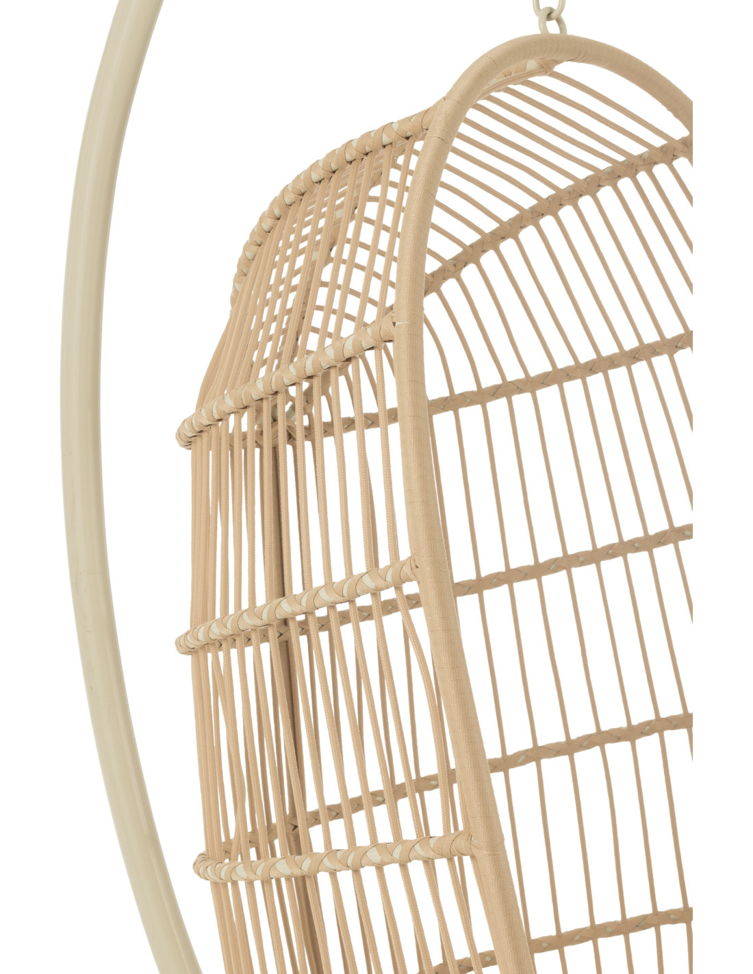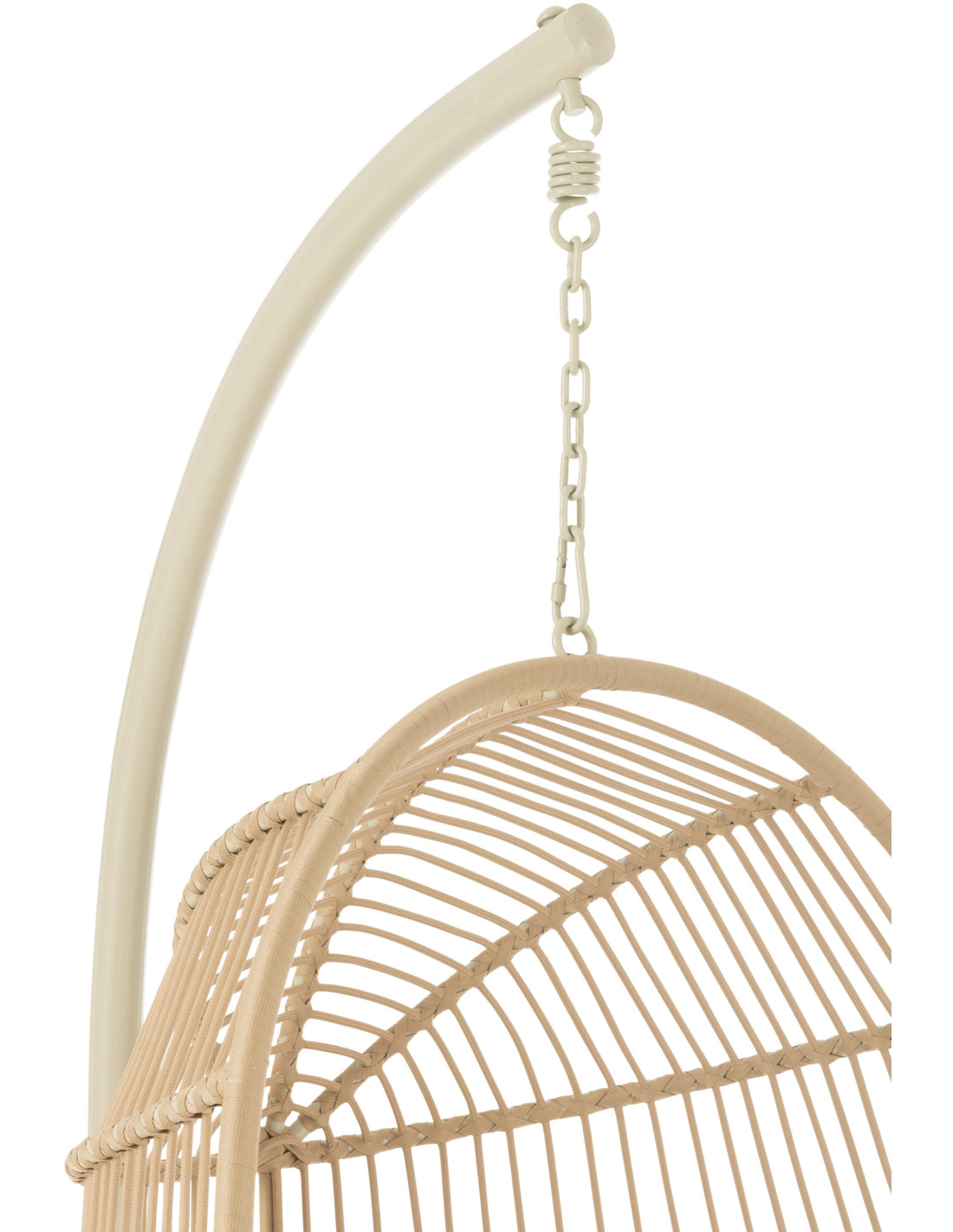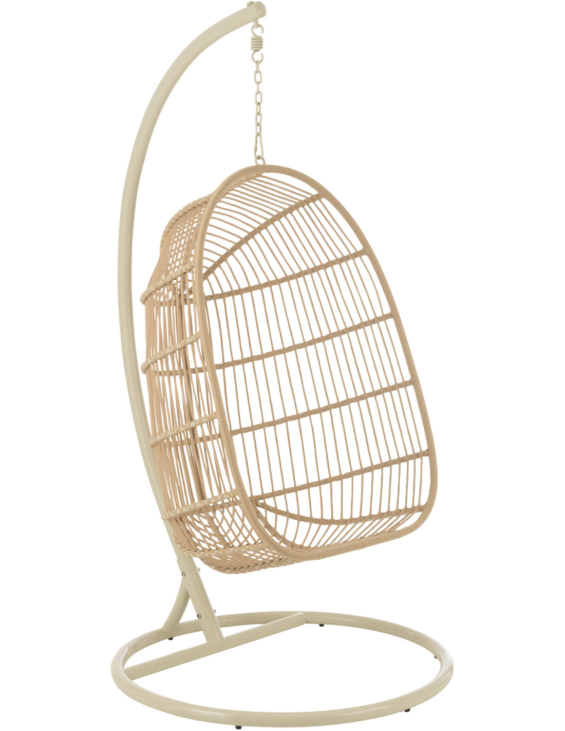 Avec sa teinte beige douce, ce fauteuil suspendu apporte une sensation de calme et de légèreté. Il s'intègre naturellement dans des ambiances épurées ou naturelles.