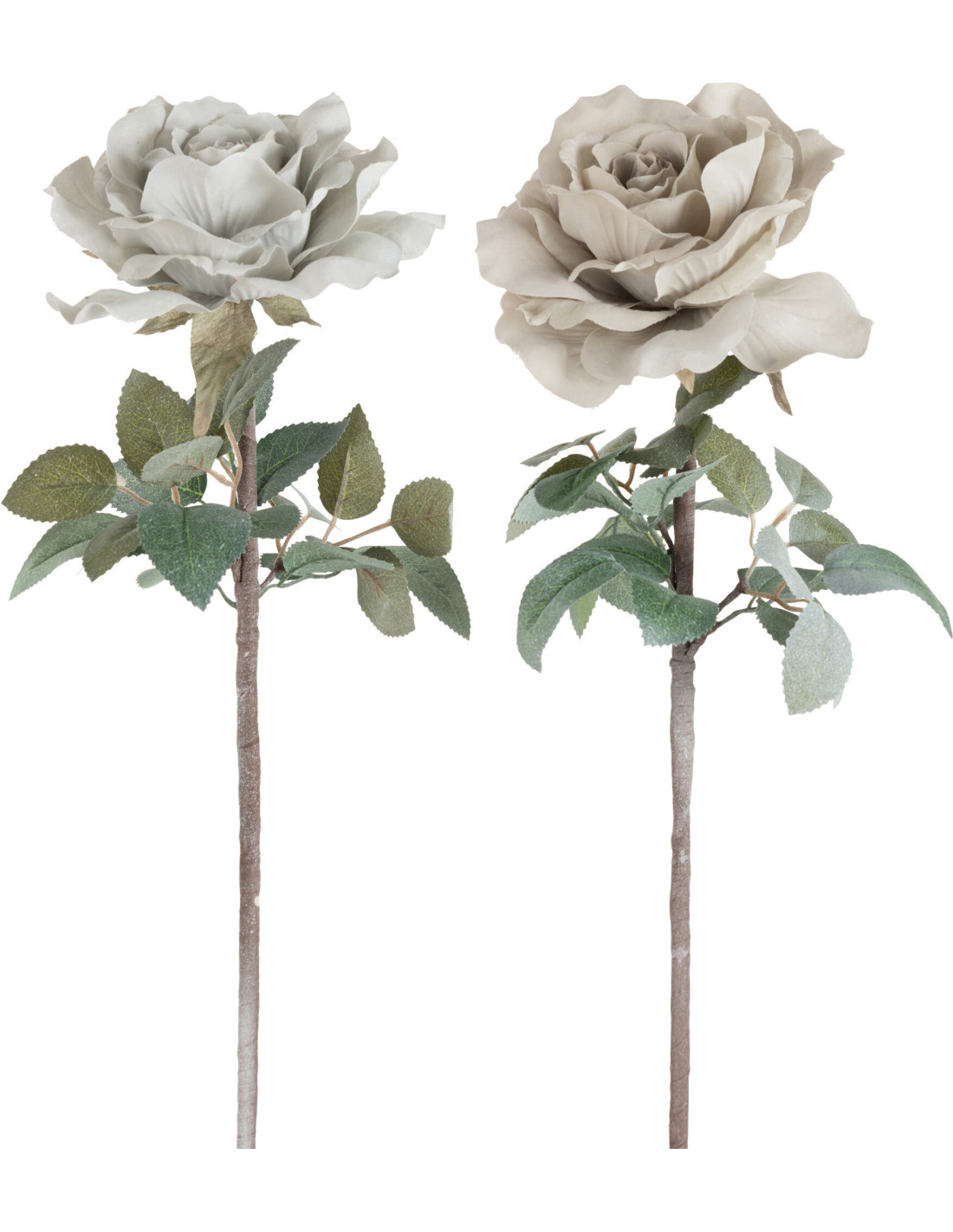 Fleur artificielle XL réaliste Rose Hauteur 65 cm en Tissu Beige Blanc Effet givré (Lot de 2)