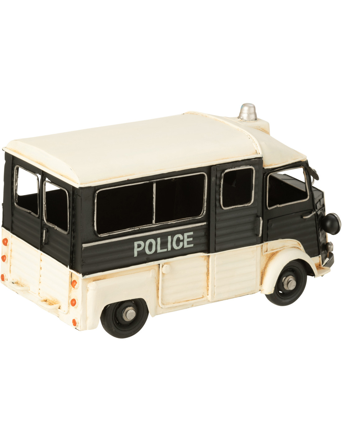 Fourgon de police miniature rétro vintage 28 cm en Métal Noir Blanc cassé Trendy