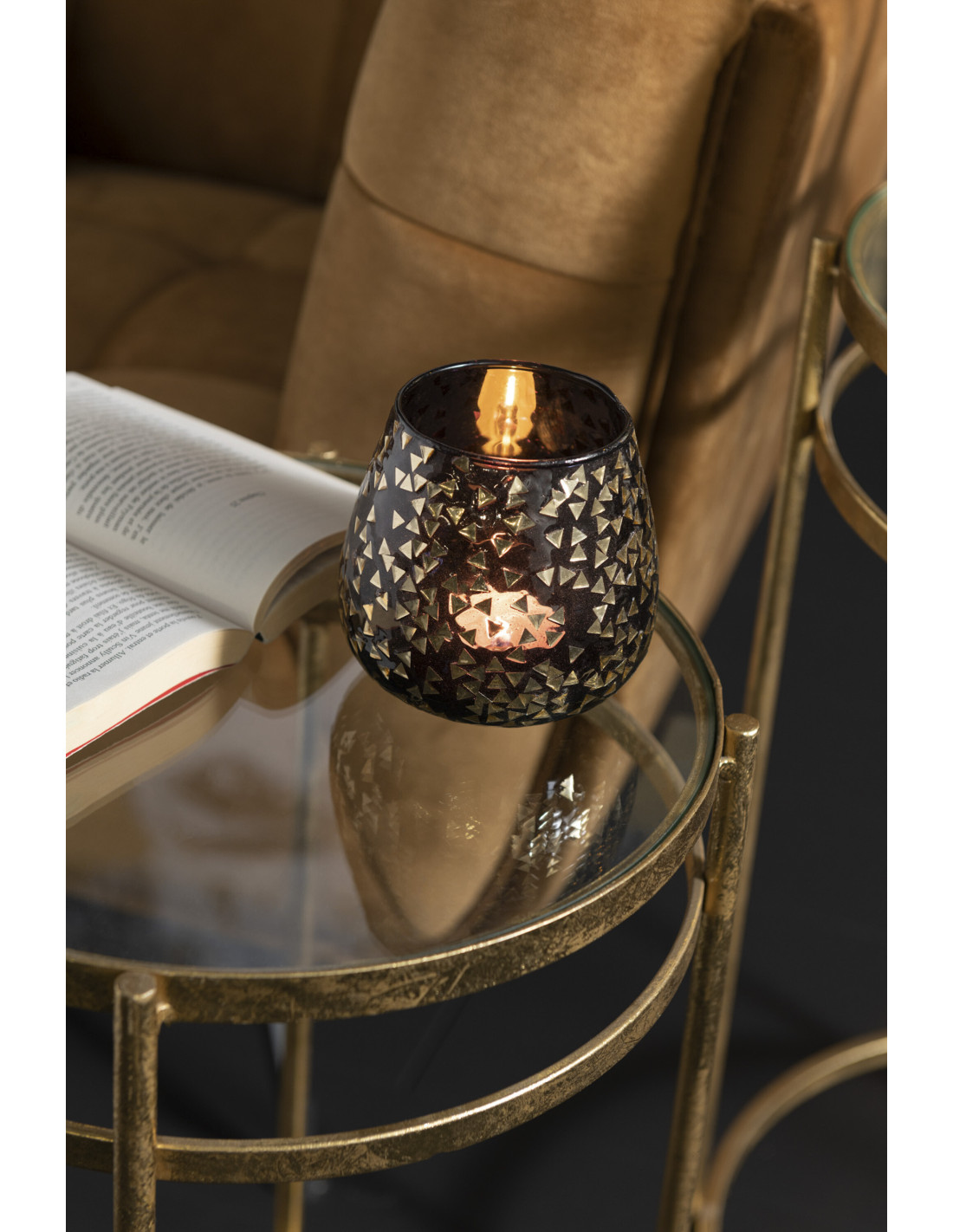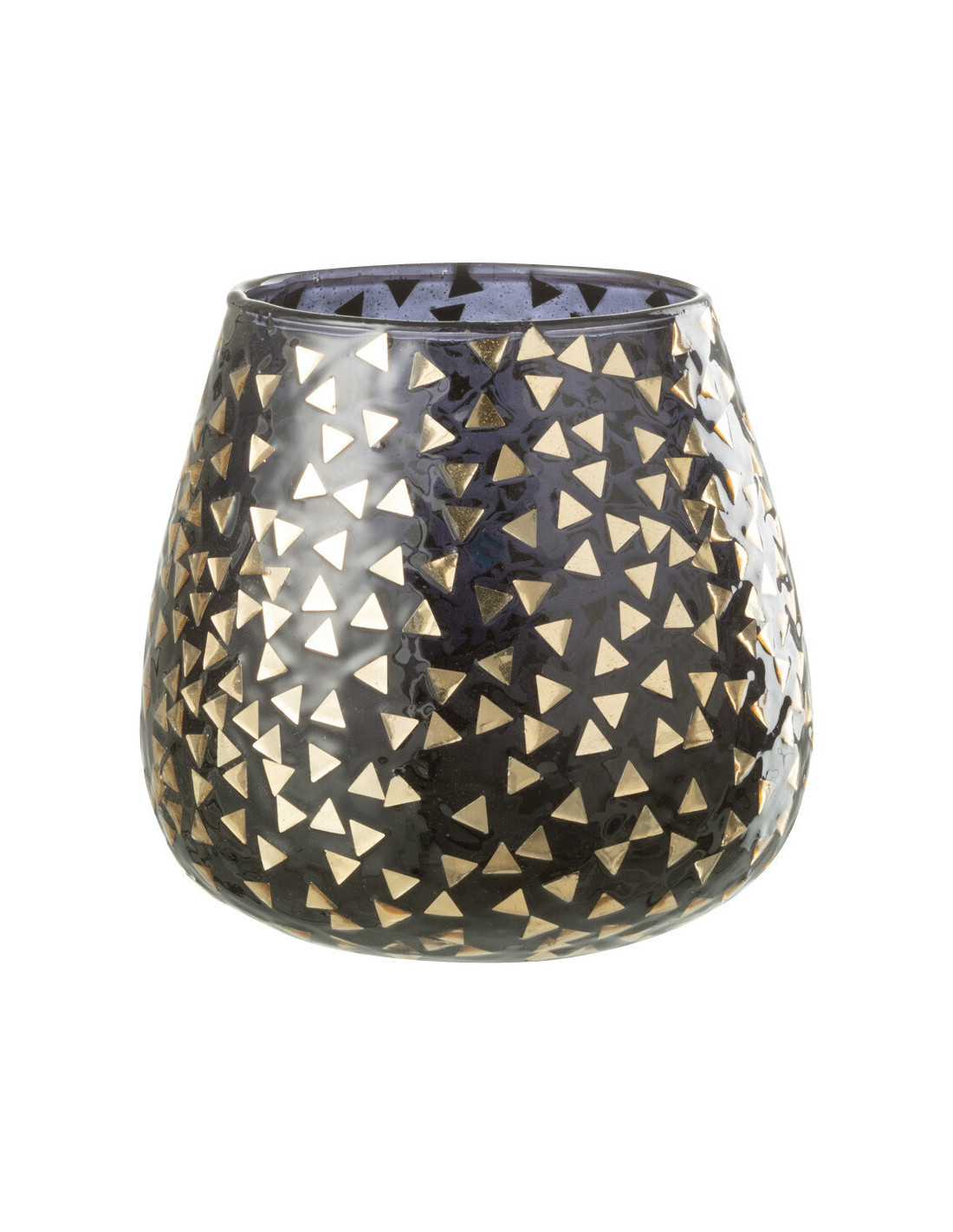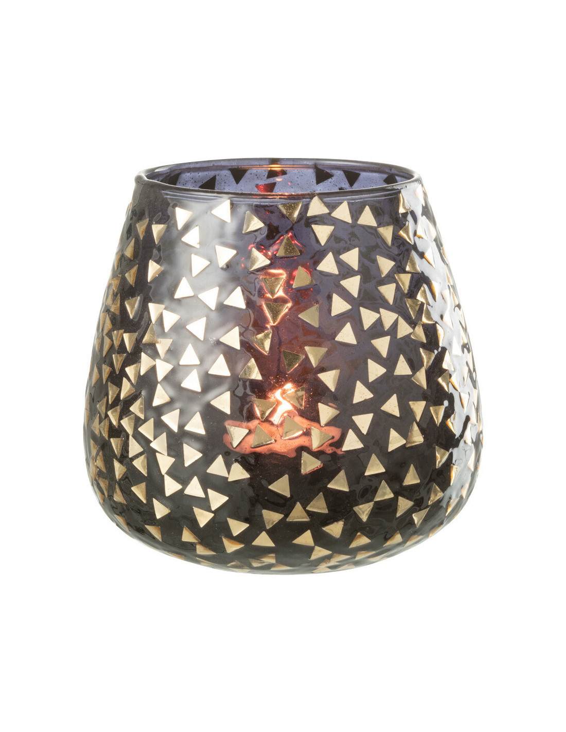 Photophore en verre noir motif Triangles dorés 11 cm - 1