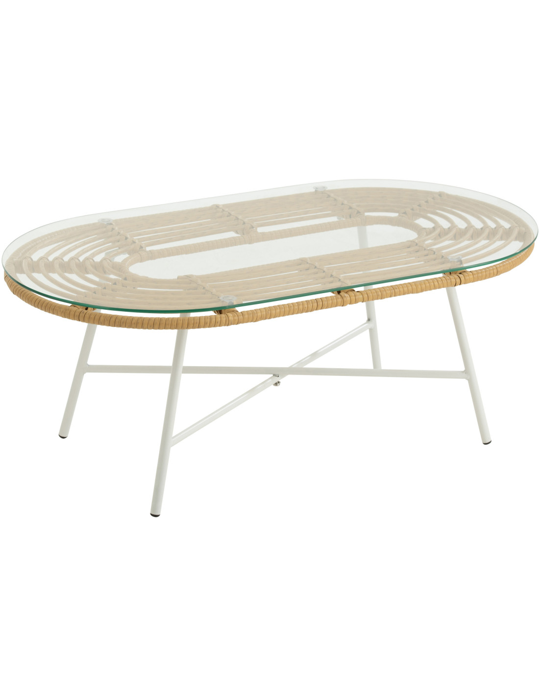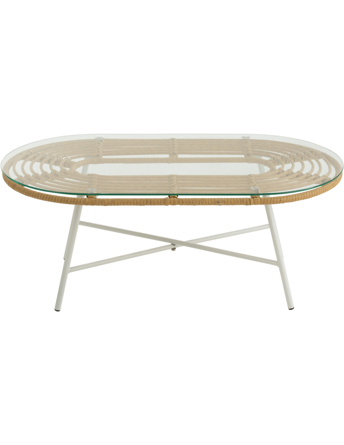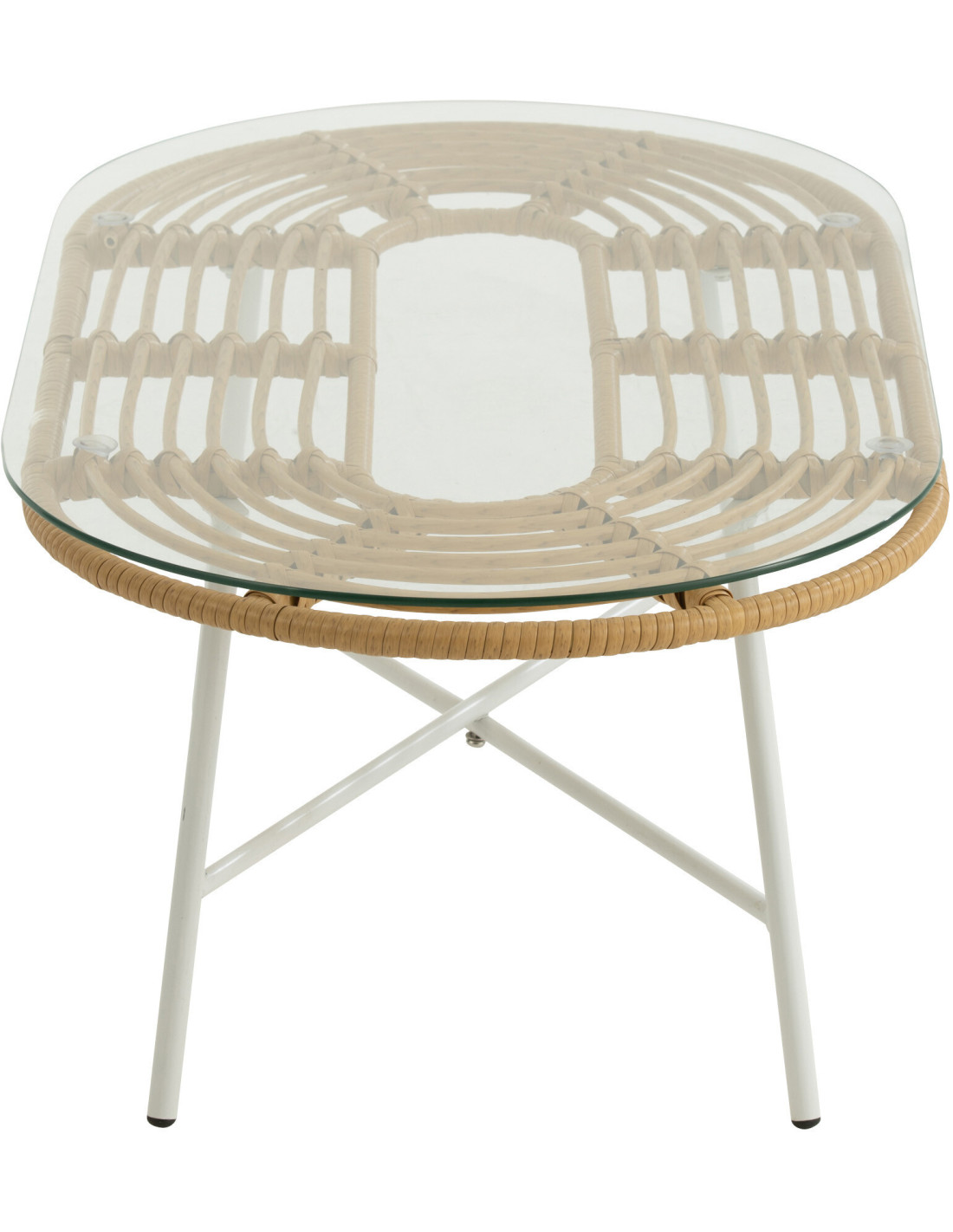 Table basse extérieur verre métal blanc rotin synthétique naturel - 1