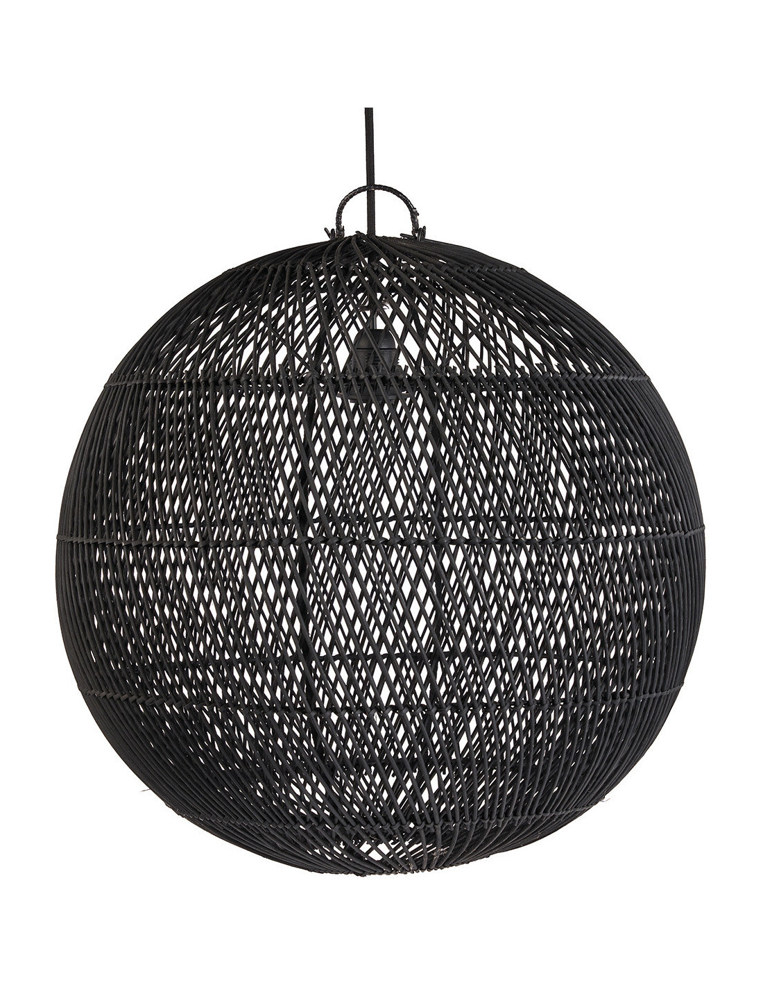 Grand Abat-jour bohème Boule 50 cm Rotin Noir Tressé The Bubble