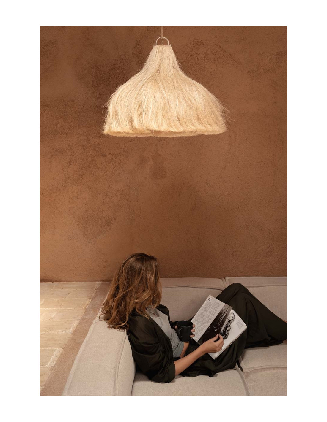Grand Abat-jour bohème Cheveux 60 cm Herbe Naturel The Rami