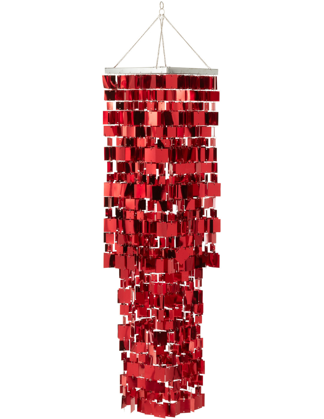 Grand Abat-jour pour suspension Carrés Hauteur 122 cm en PVC Rouge Brillant Disco - 1