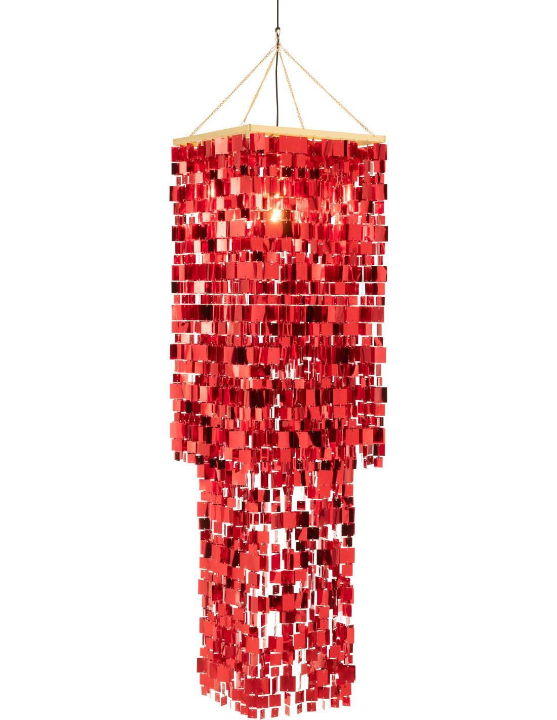 Grand Abat-jour pour suspension Carrés Hauteur 180 cm en PVC Rouge Brillant Disco