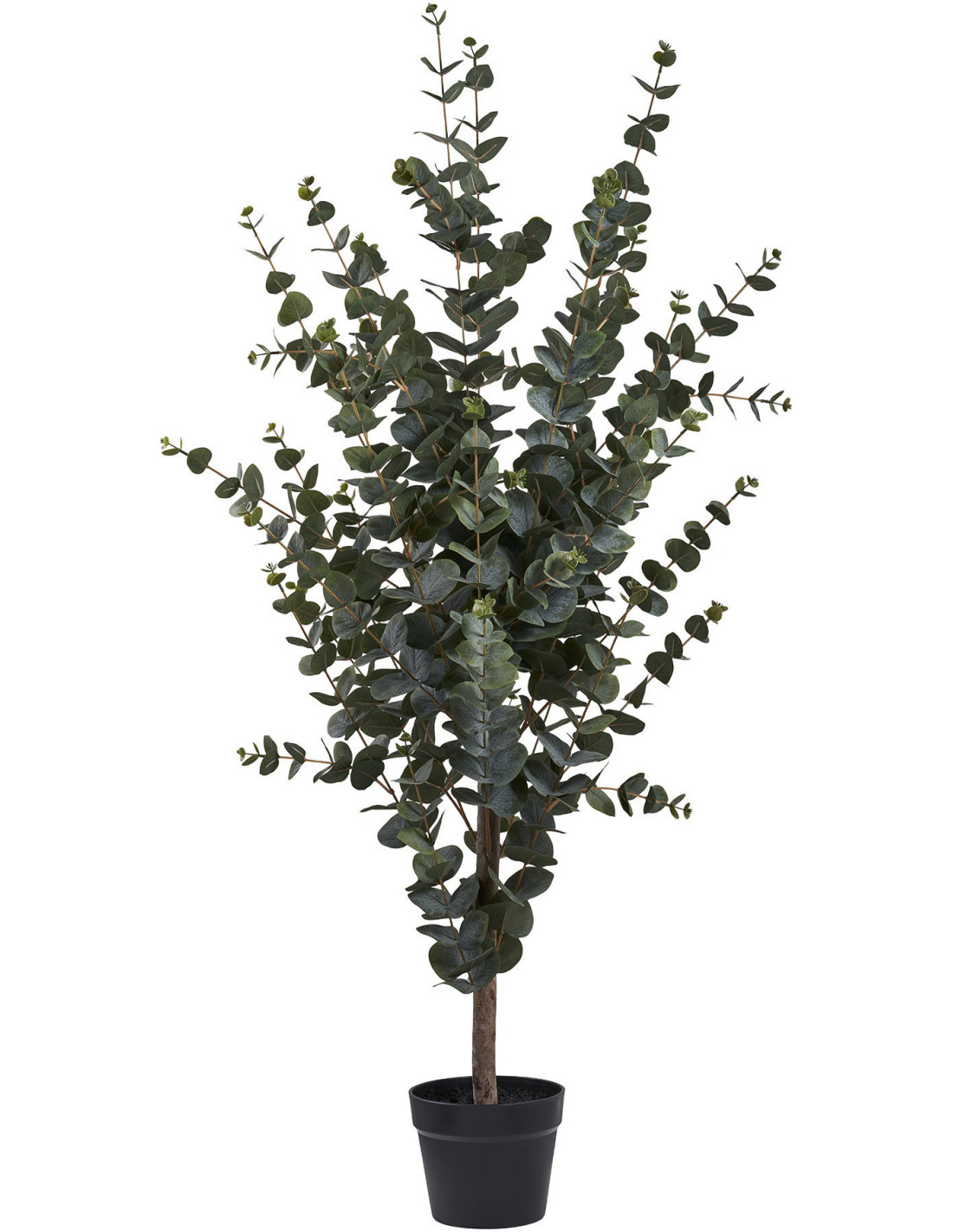 Grand Arbre artificiel réaliste Eucalyptus Hauteur 120 cm Plastique Vert Noir