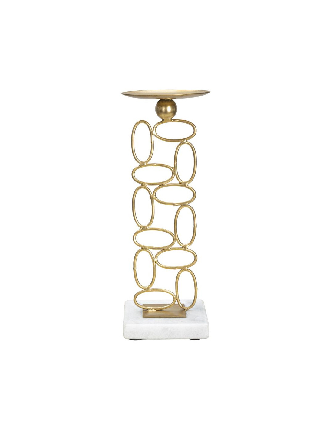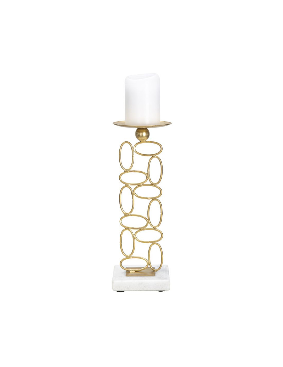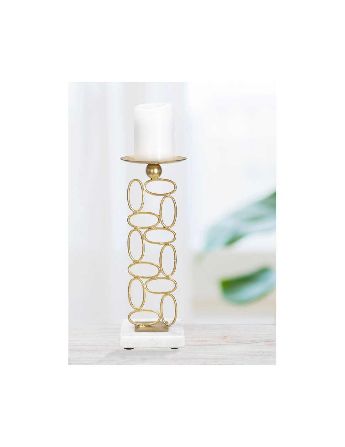 Grand Bougeoir moderne Hauteur 27 cm en Métal Doré Marbre Blanc Bubbles